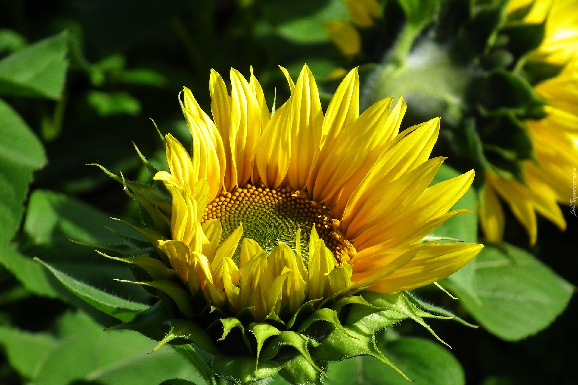 Edytor tapety: Rozkwitający słonecznik w słonecznym blasku