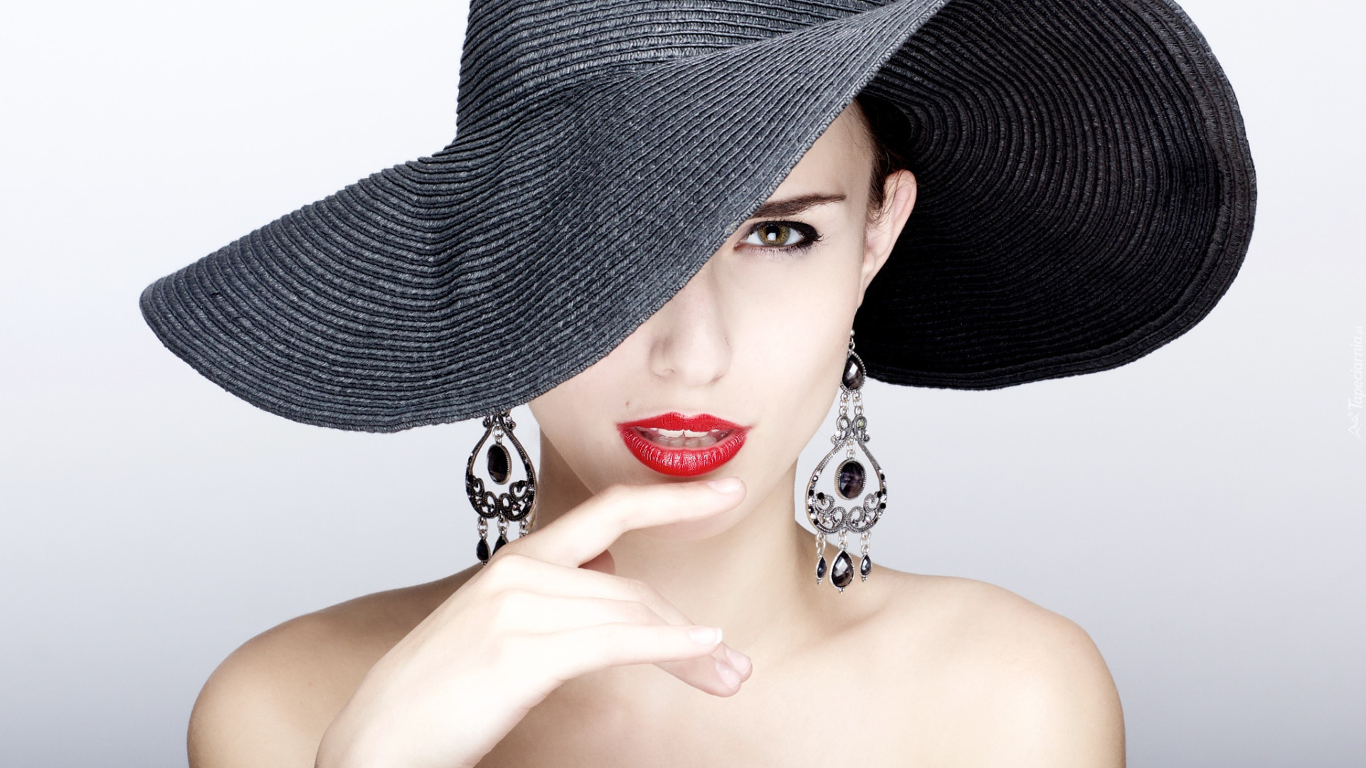 Edytor tapety: Kobieta z kolczykami w czarnym kapeluszu