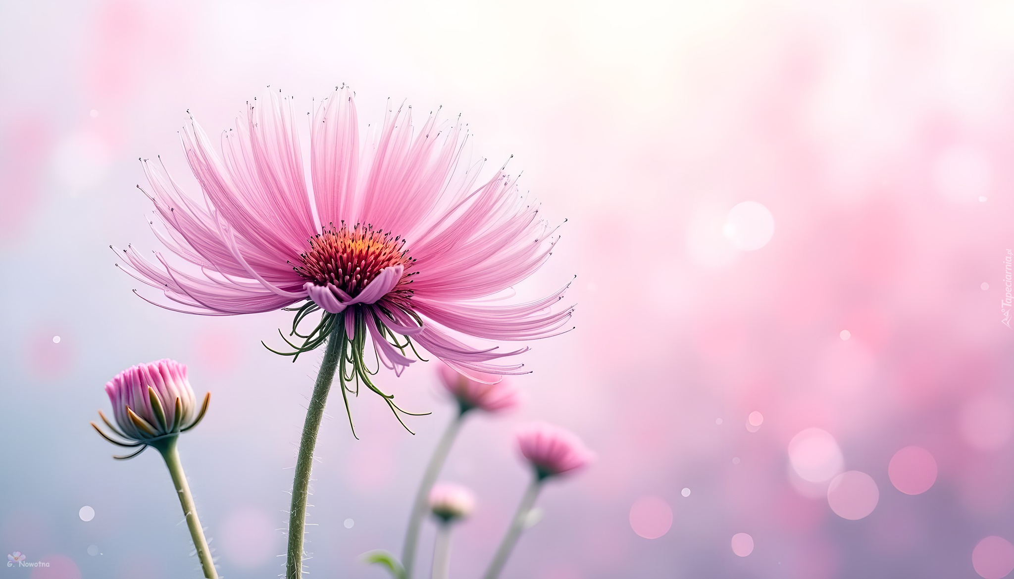 Edytor tapety: Różowy kwiat z pąkami na rozmytym tle
