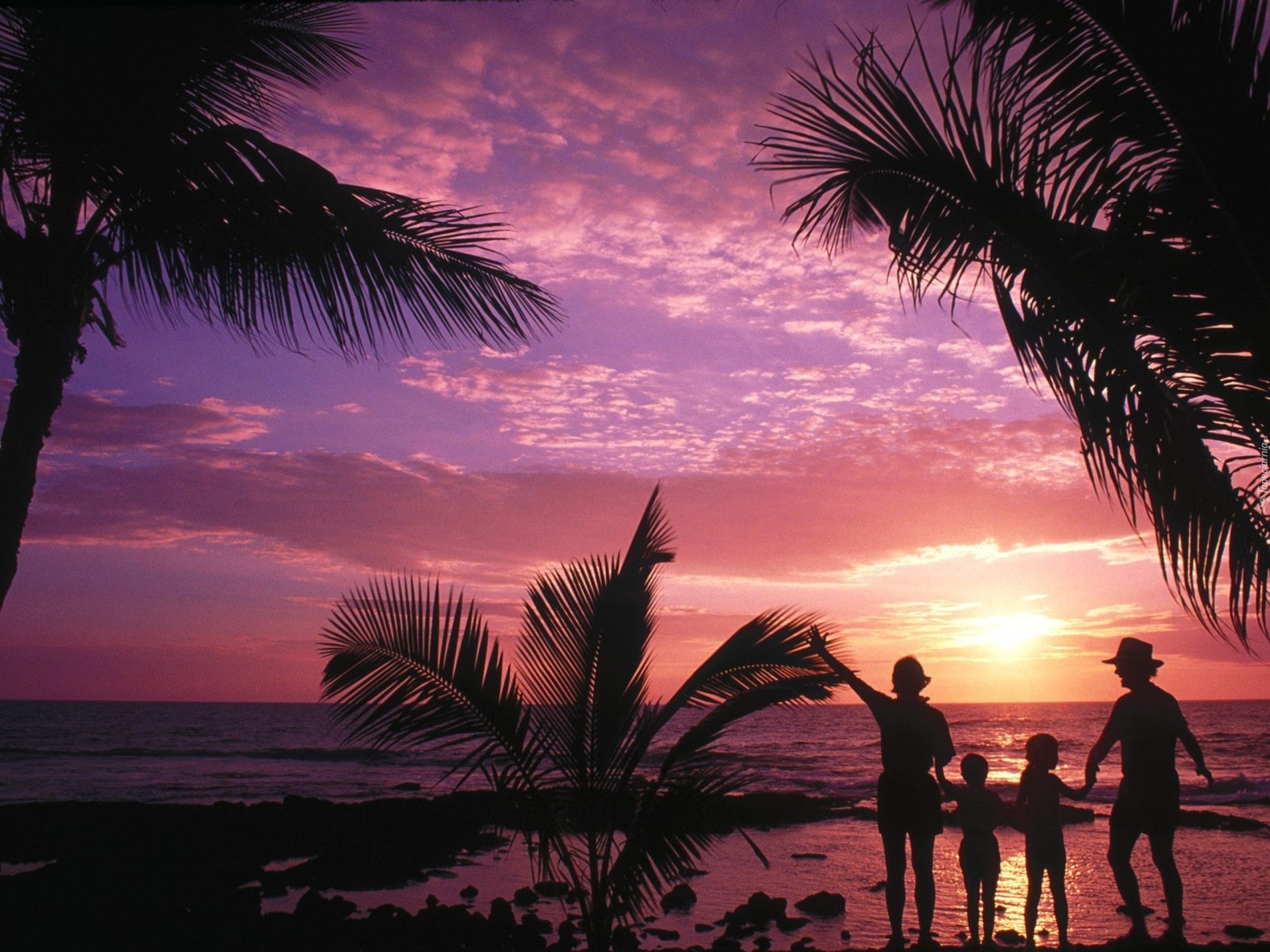 Edytor tapety: Zachód Słońca, Palmy, Niebo, Morze