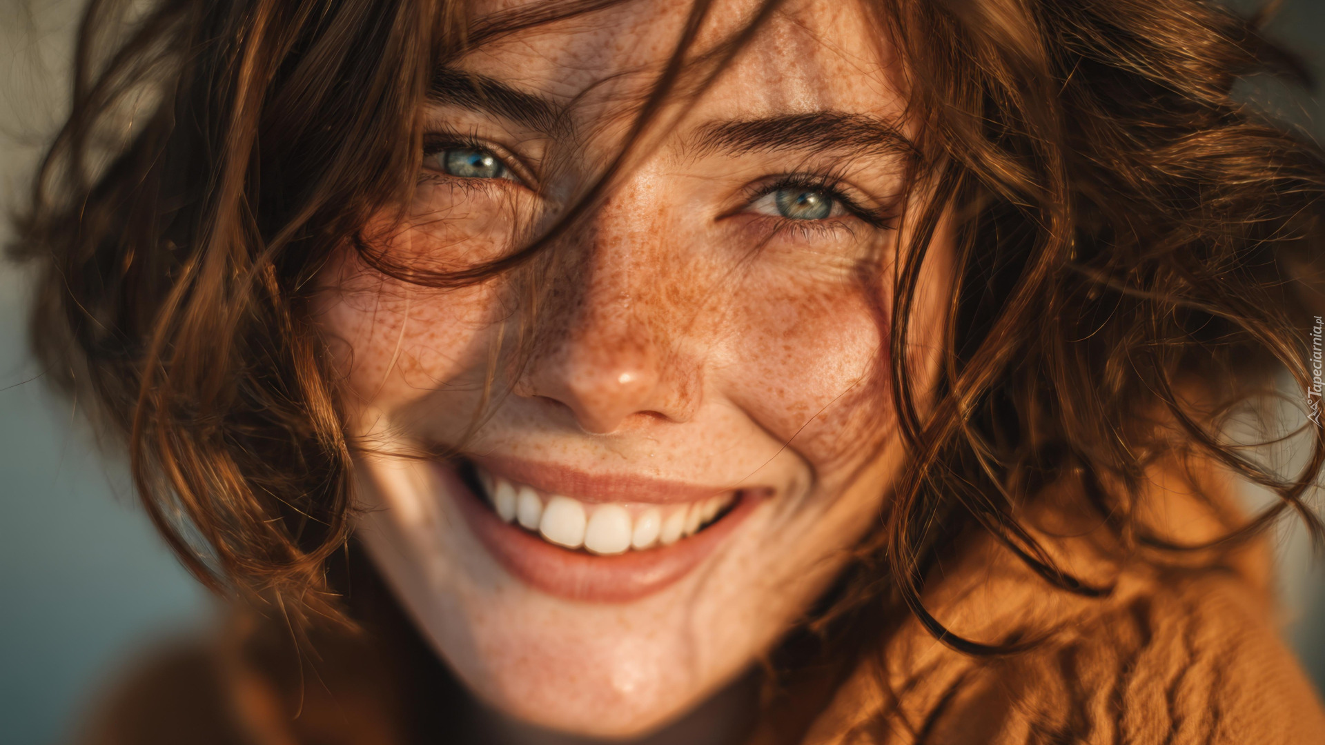 Edytor tapety: Uśmiech na twarzy piegowatej dziewczyny