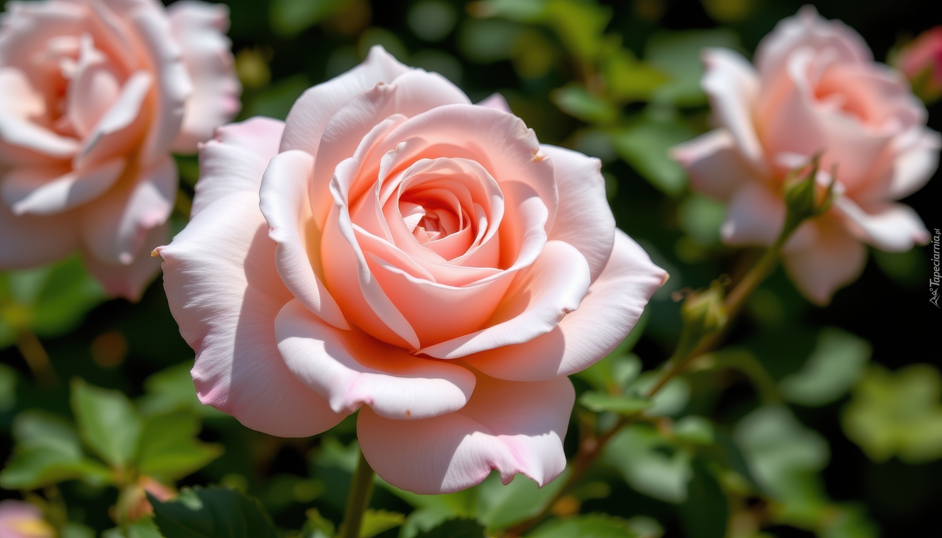 Edytor tapety: Jasnoróżowe róże w słonecznym blasku
