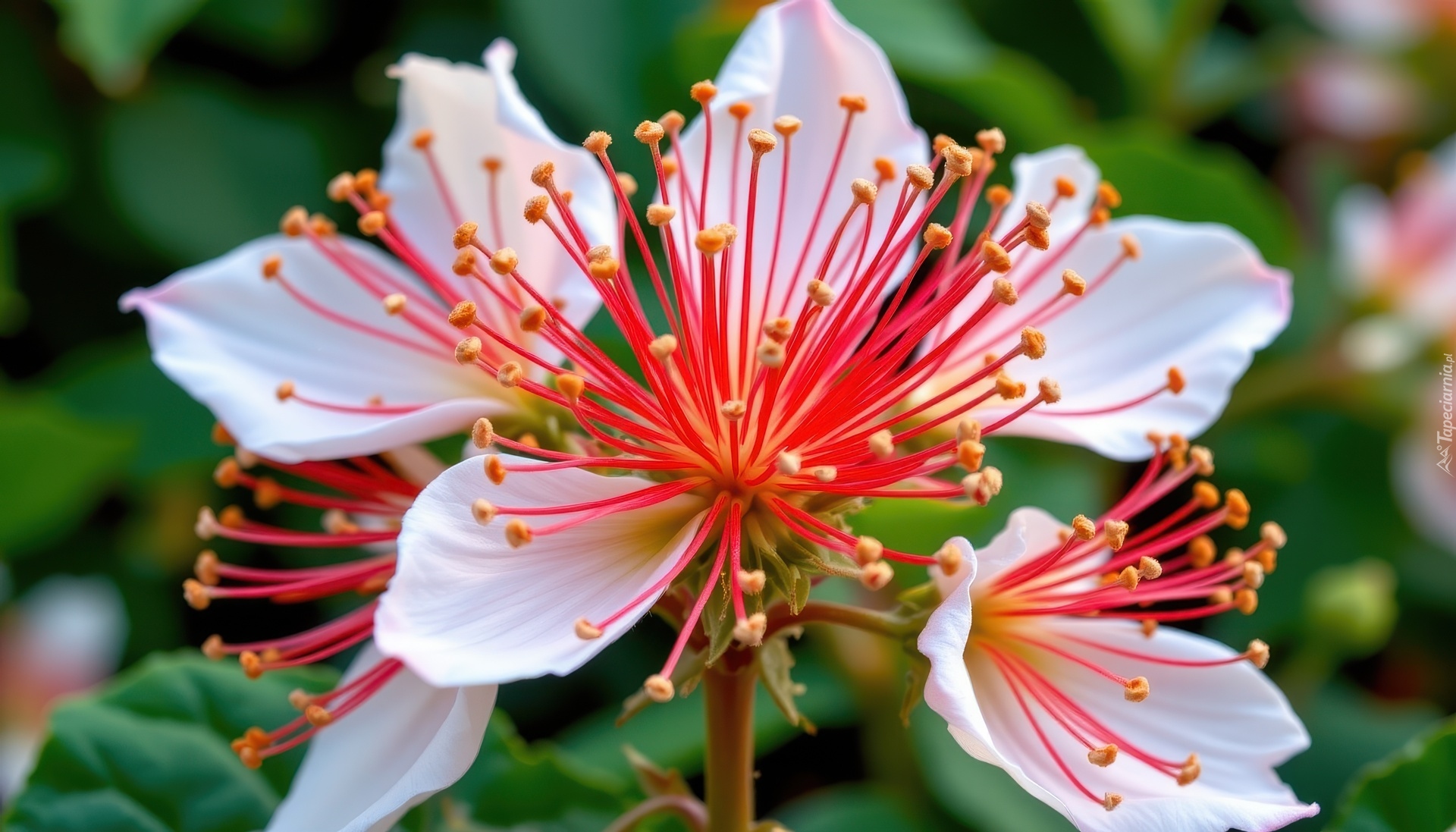 Edytor tapety: Rozkwitnięty biały kwiat z czerwonymi pręcikami