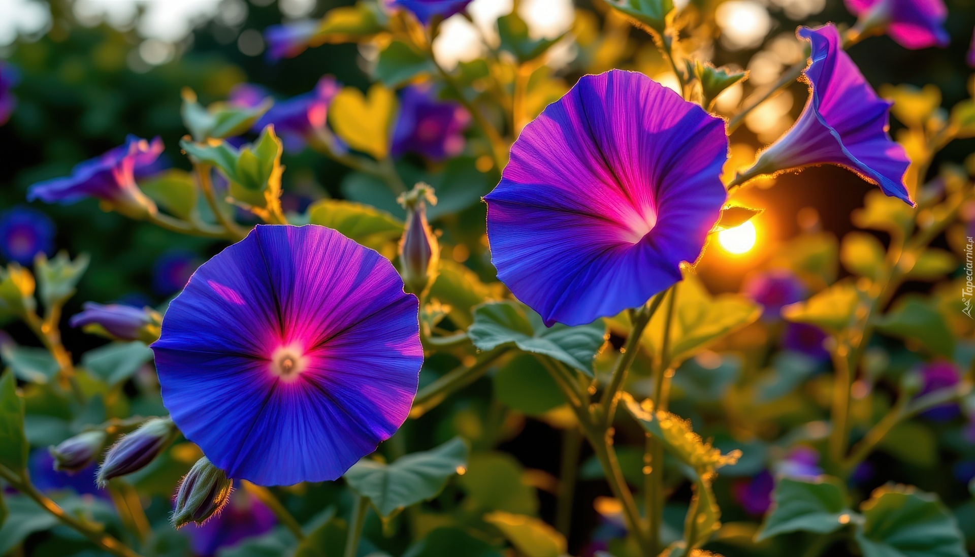 Edytor tapety: Rozświetlone niebieskie kwiaty powoju