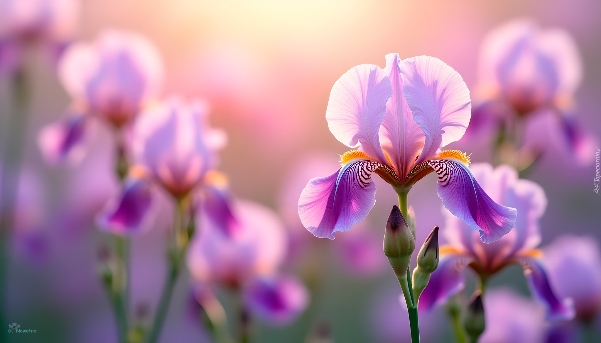 Edytor tapety: Rozświetlony liliowy irys w zbliżeniu