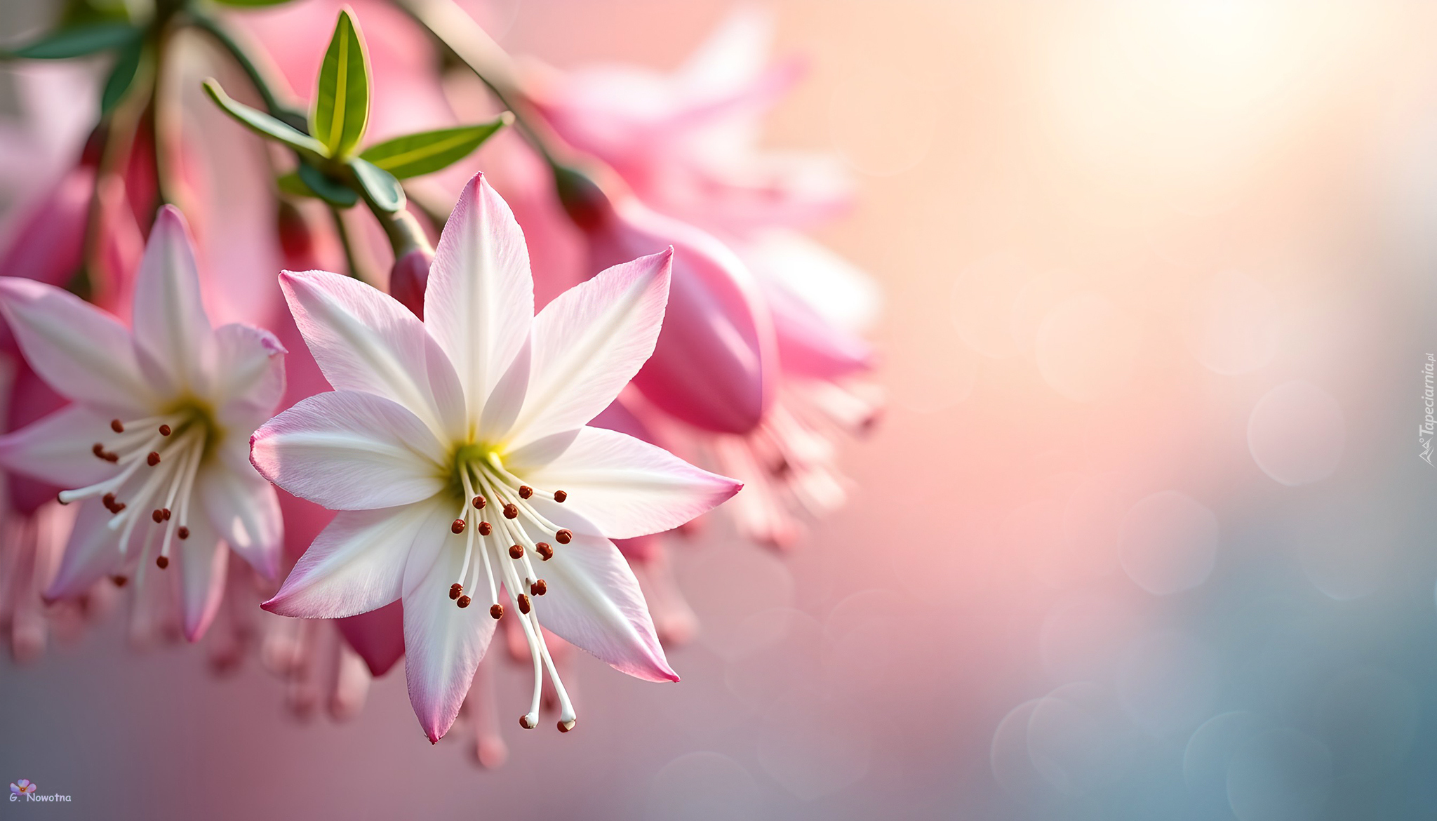 Edytor tapety: Biało-różowy kwiat w grafice