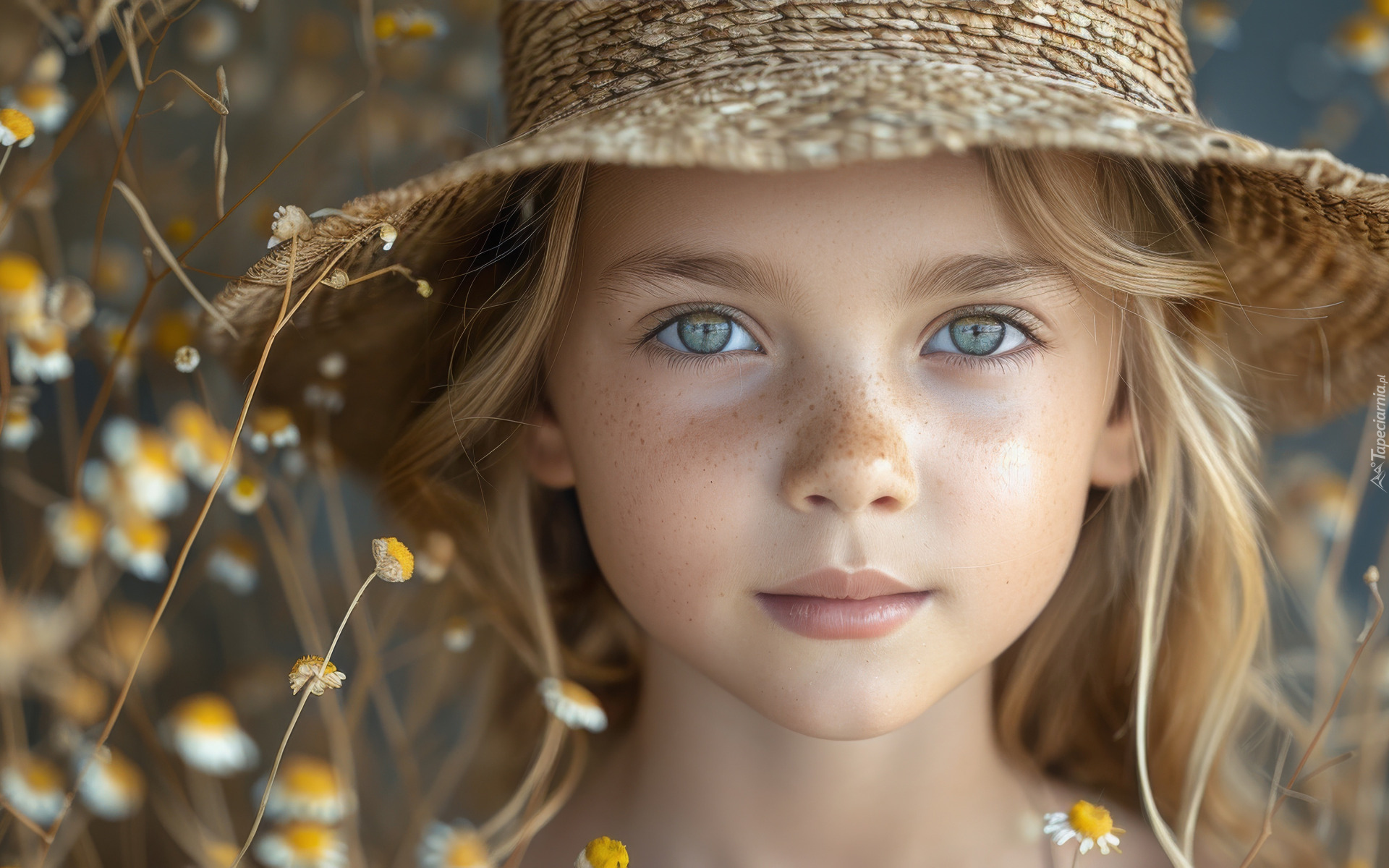 Edytor tapety: Twarz piegowatej dziewczynki w słomkowym kapeluszu