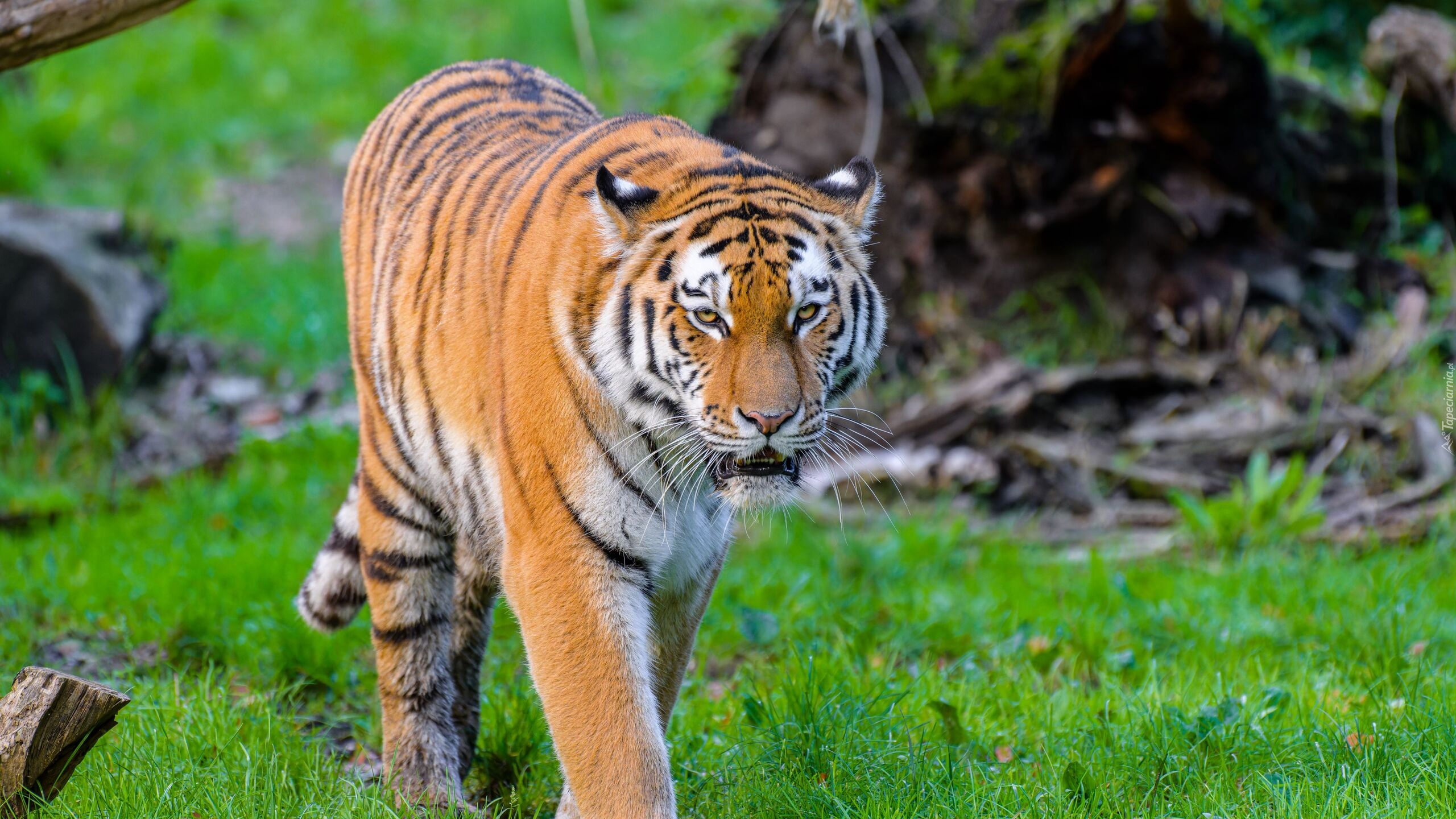 Edytor tapety: Tygrys syberyjski idący po trawie