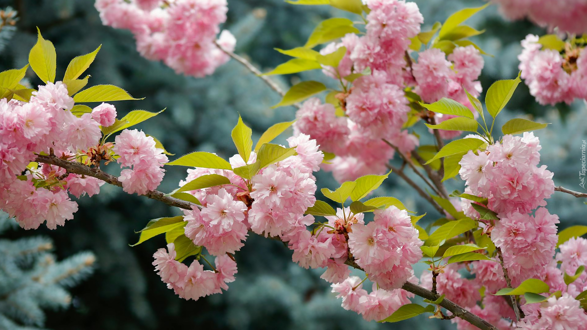 Edytor tapety: Jasnoróżowe kwiaty na gałązkach drzewa owocowego