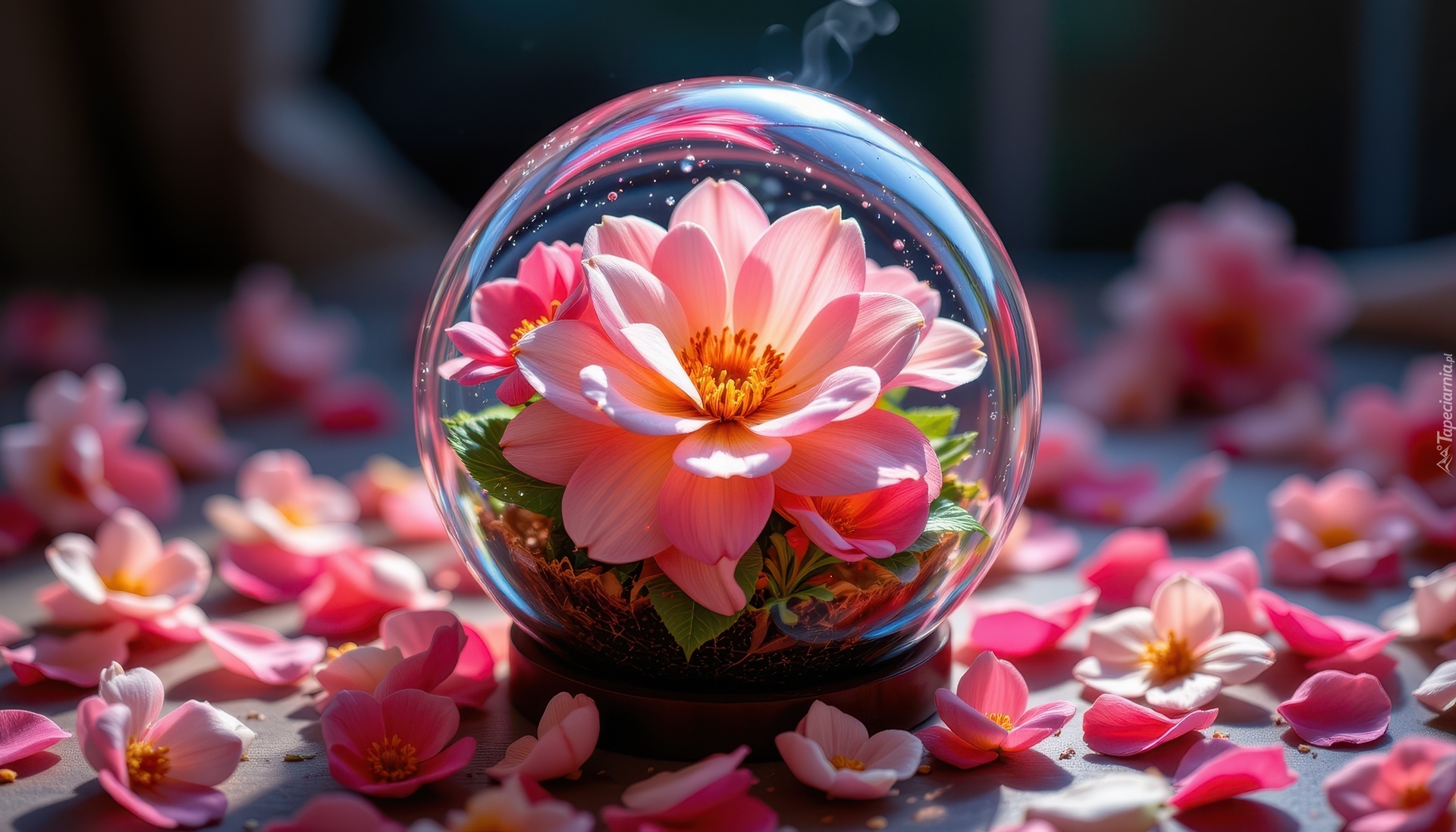 Edytor tapety: Płatki obok kwiatów w szklanej kuli