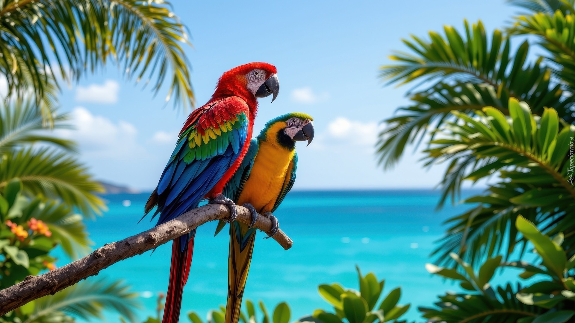Edytor tapety: Dwie ary na gałęzi na tle morza