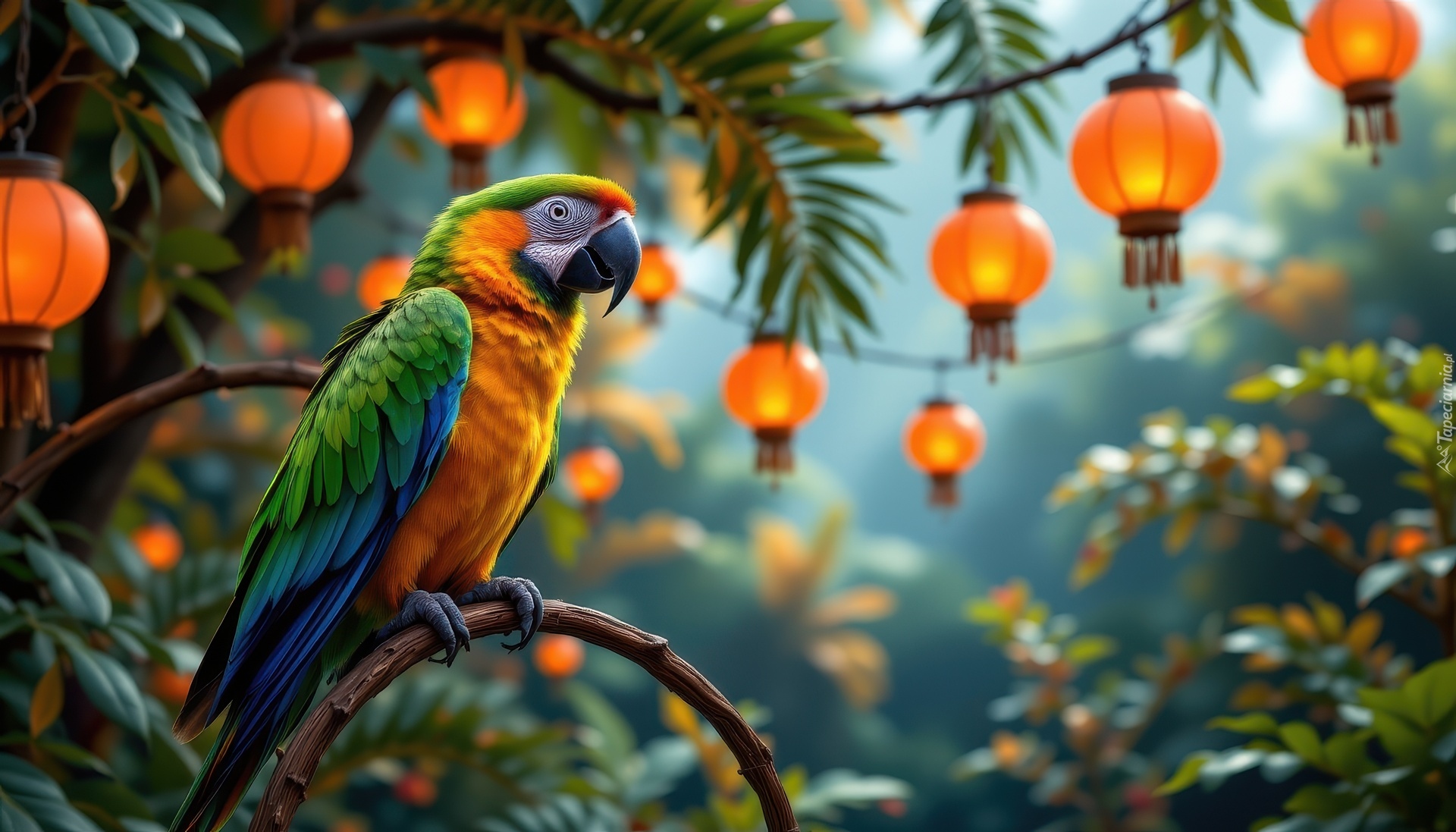 Edytor tapety: Ara i lampiony na gałęziach