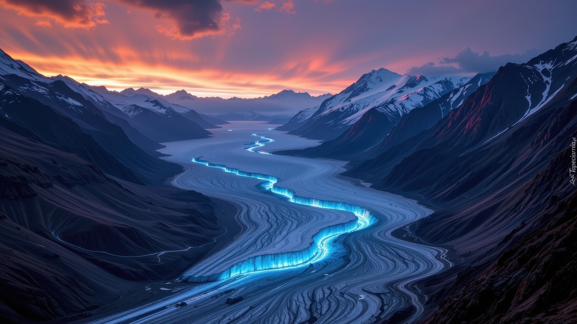 Edytor tapety: Lodowiec pomiędzy górami w grafice