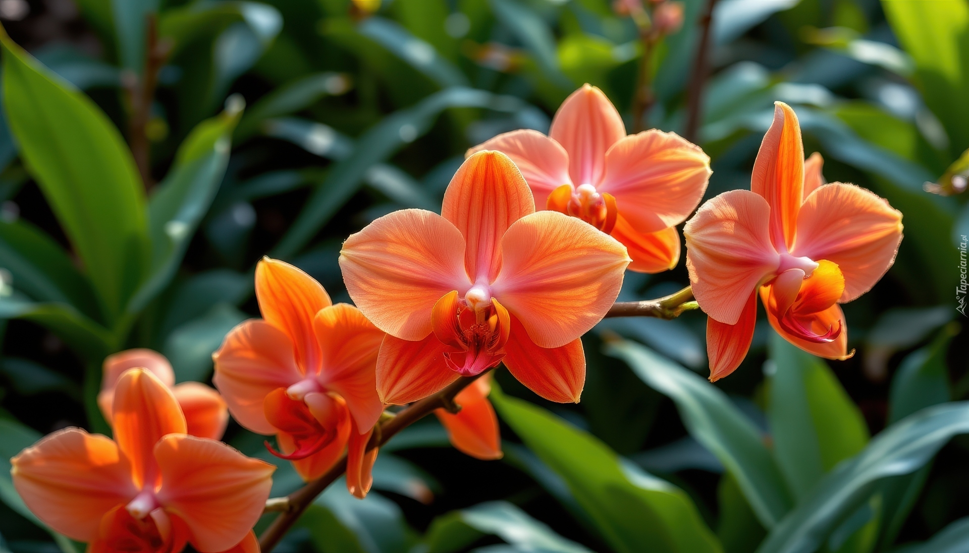 Edytor tapety: Rozkwitnięte pomarańczowe kwiaty storczyka