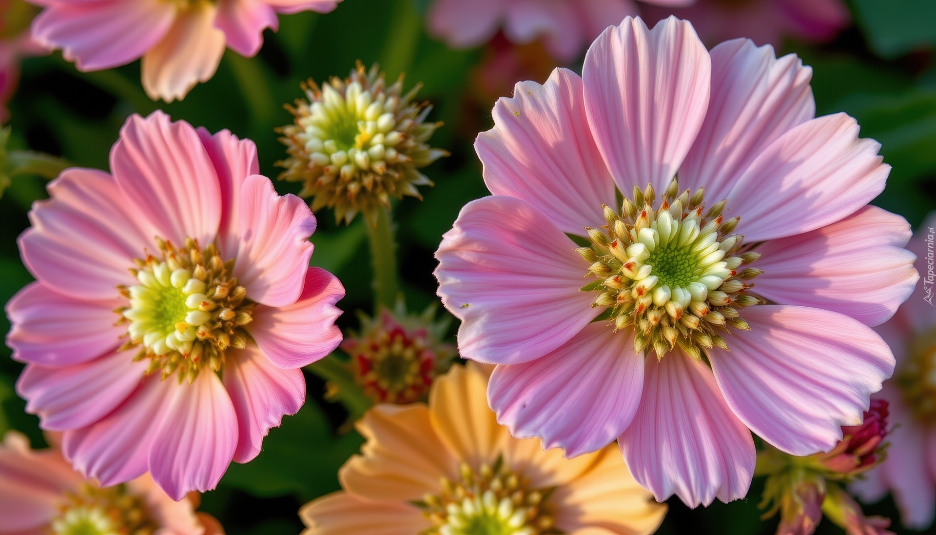 Edytor tapety: Grafika z rozświetlonymi różowymi kwiatami w zbliżeniu