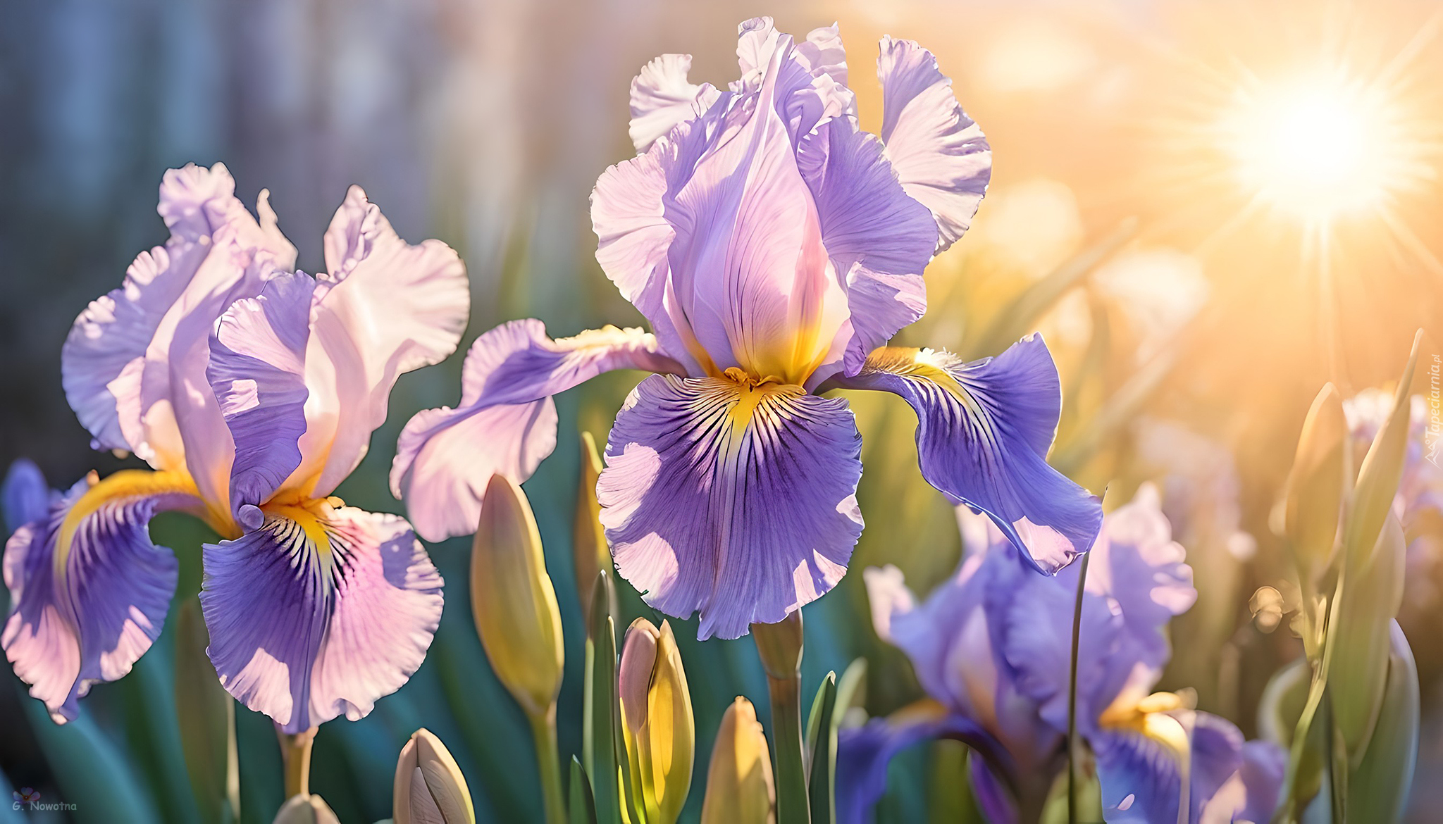 Edytor tapety: Liliowe irysy w promieniach słońca