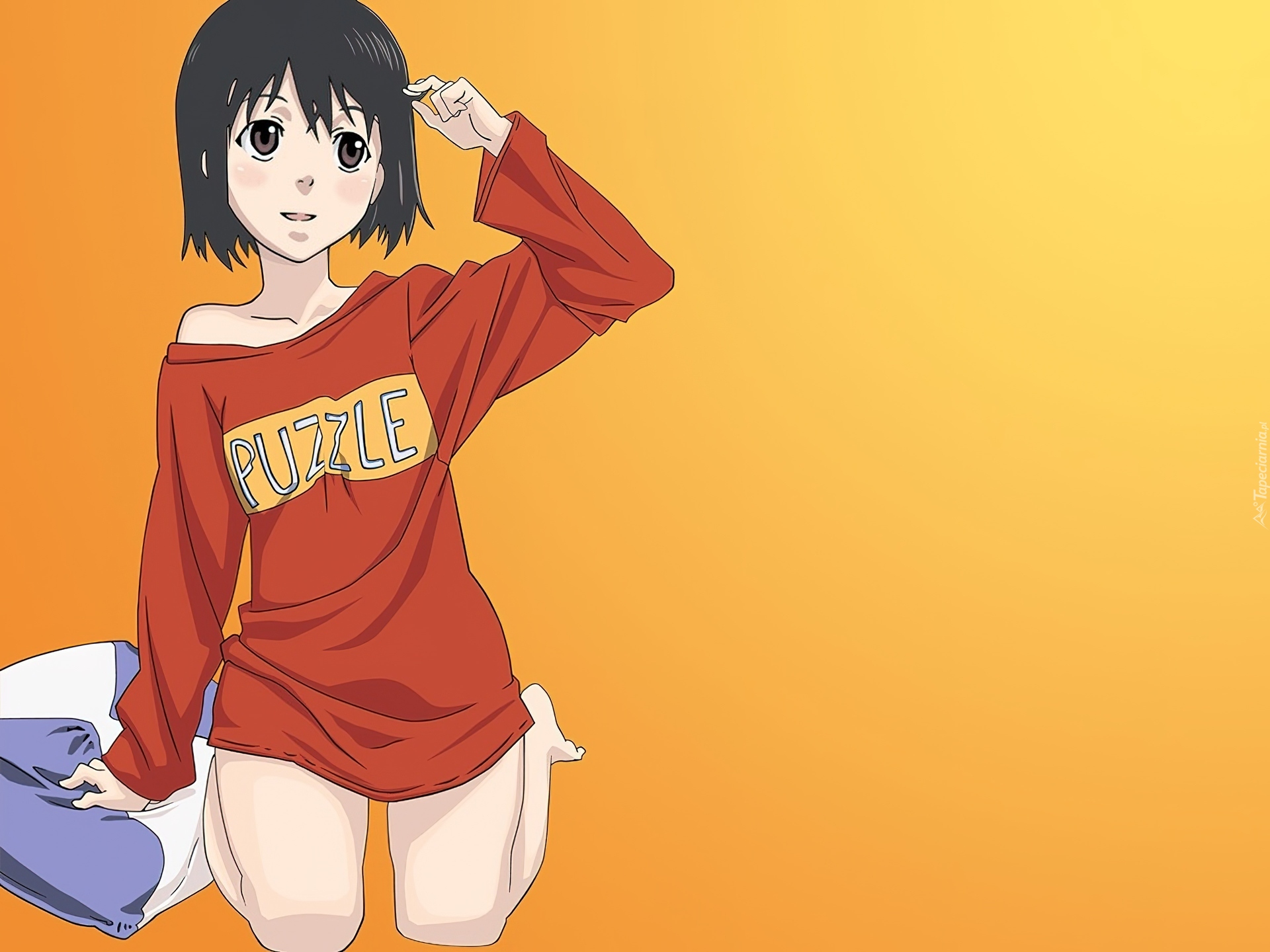 Edytor tapety: Welcome To Nhk, dziewczyna, klęczy, poduszka