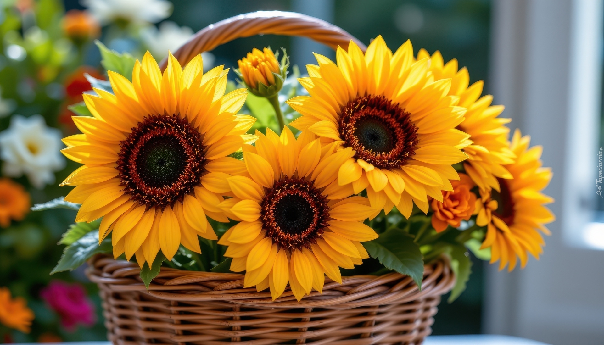 Edytor tapety: Rozświetlone słoneczniki w koszyku