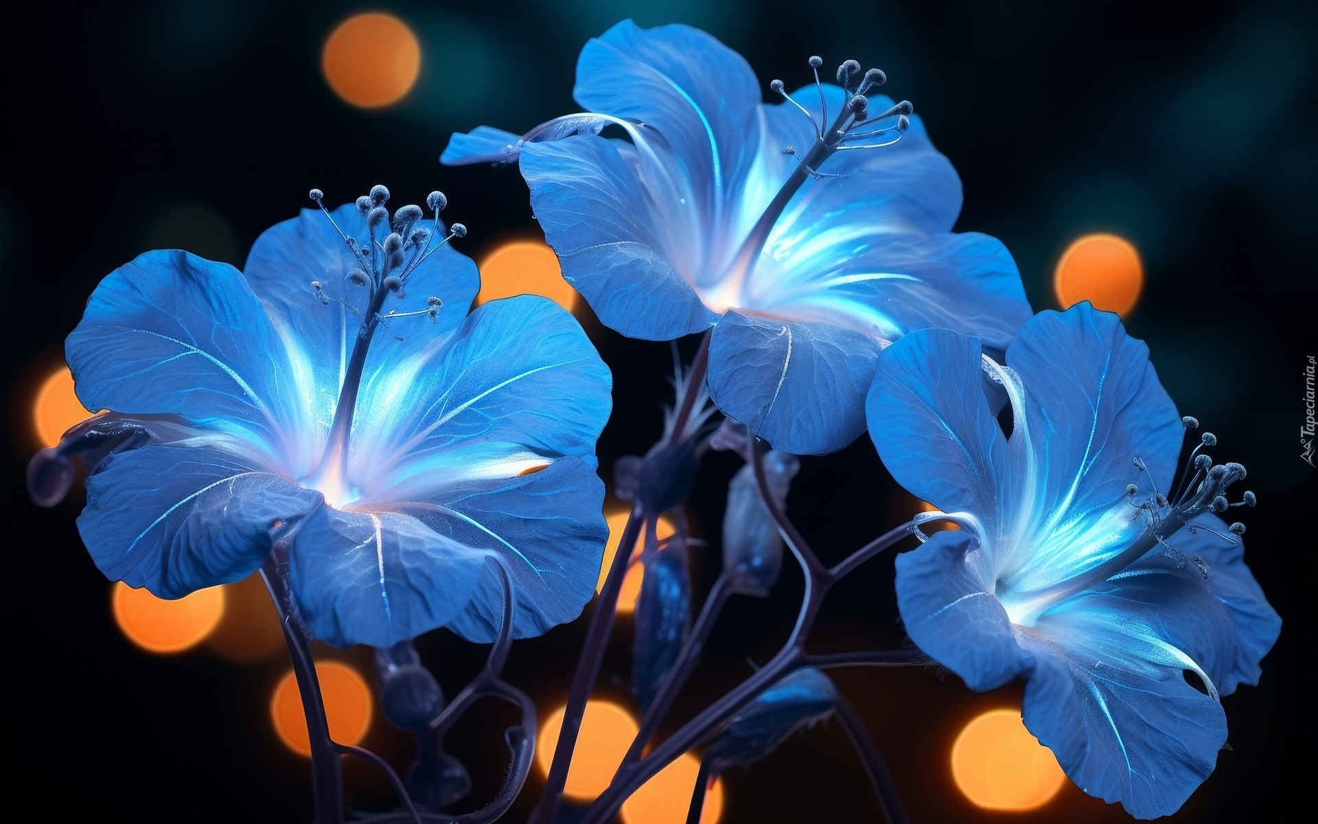 Edytor tapety: Podświetlone niebieskie kwiaty w grafice