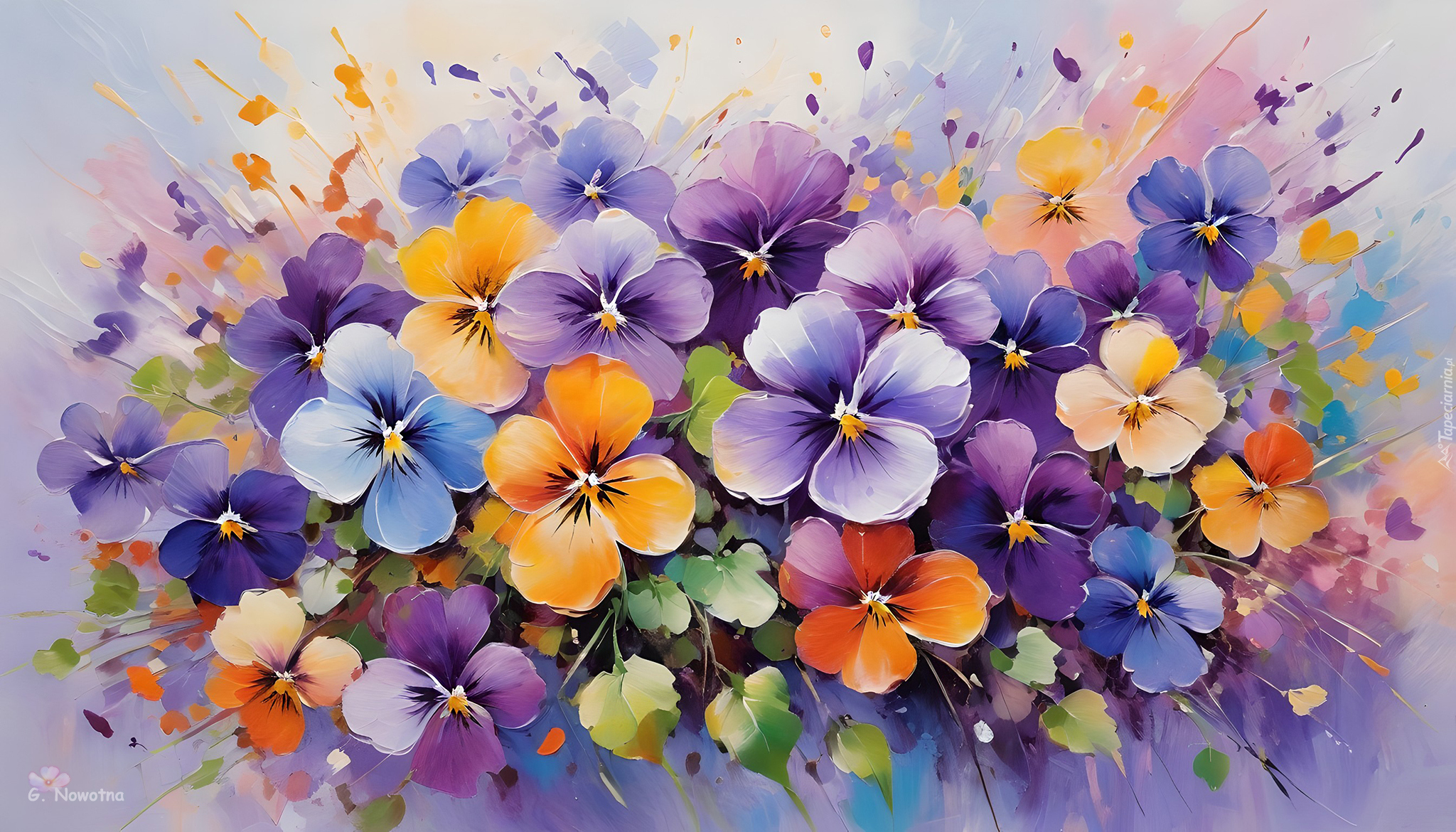 Edytor tapety: Grafika z kolorowymi bratkami w zbliżeniu