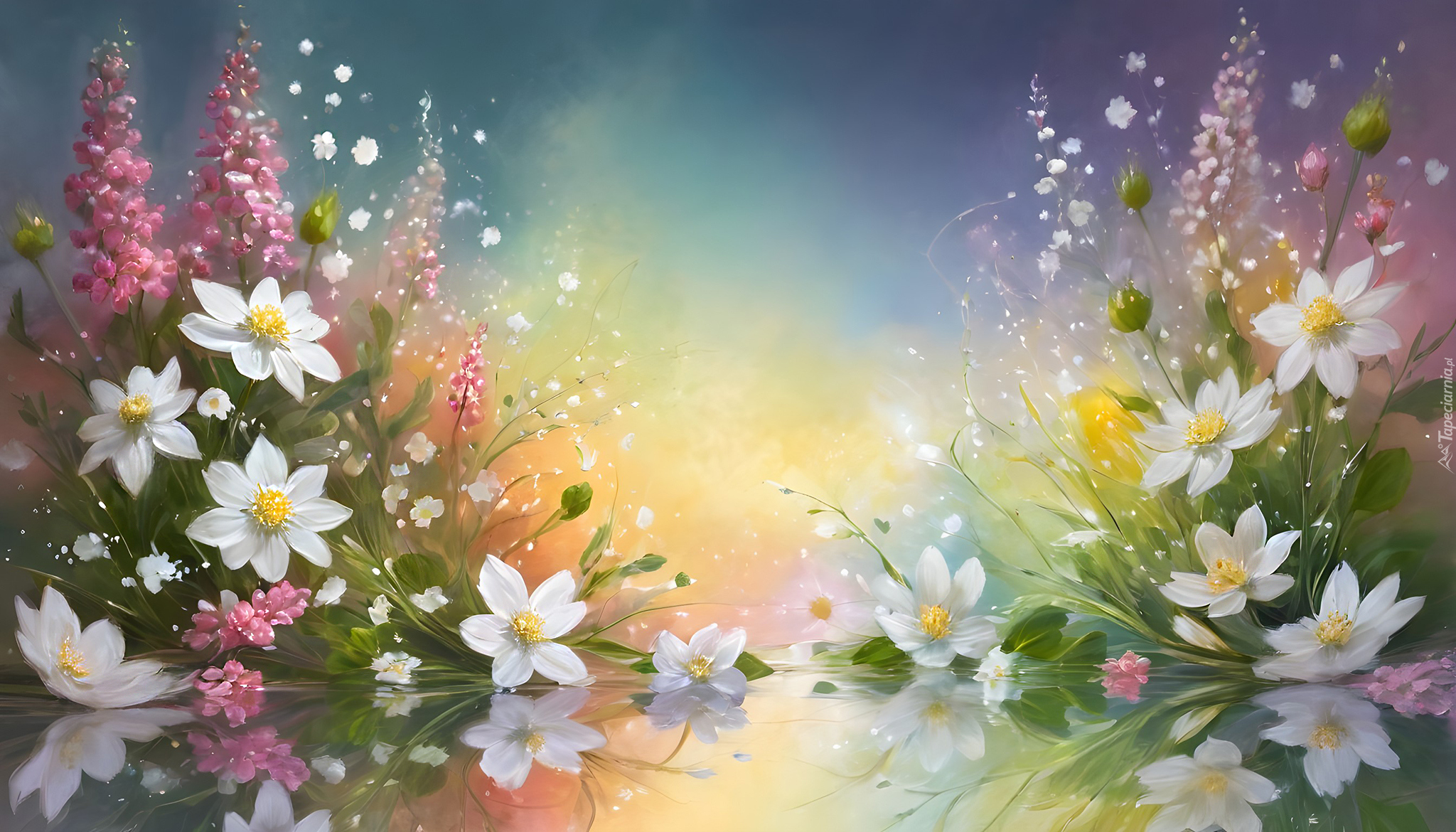 Edytor tapety: Grafika z kolorowymi kwiatami na rozmytym tle