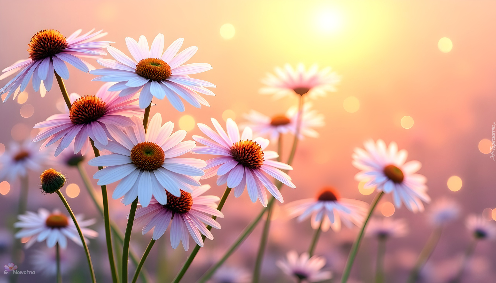 Edytor tapety: Rozkwitnięte różowe jeżówki w słonecznym blasku