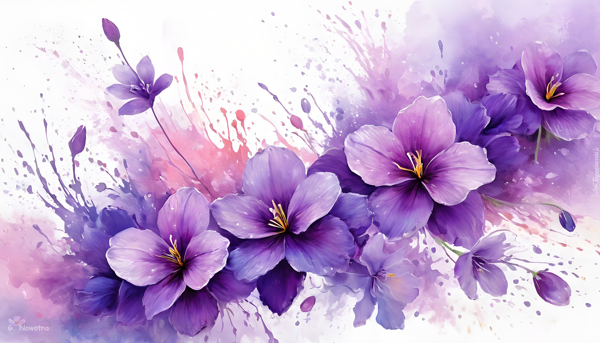 Edytor tapety: Grafika z fioletowymi kwiatami na białym tle