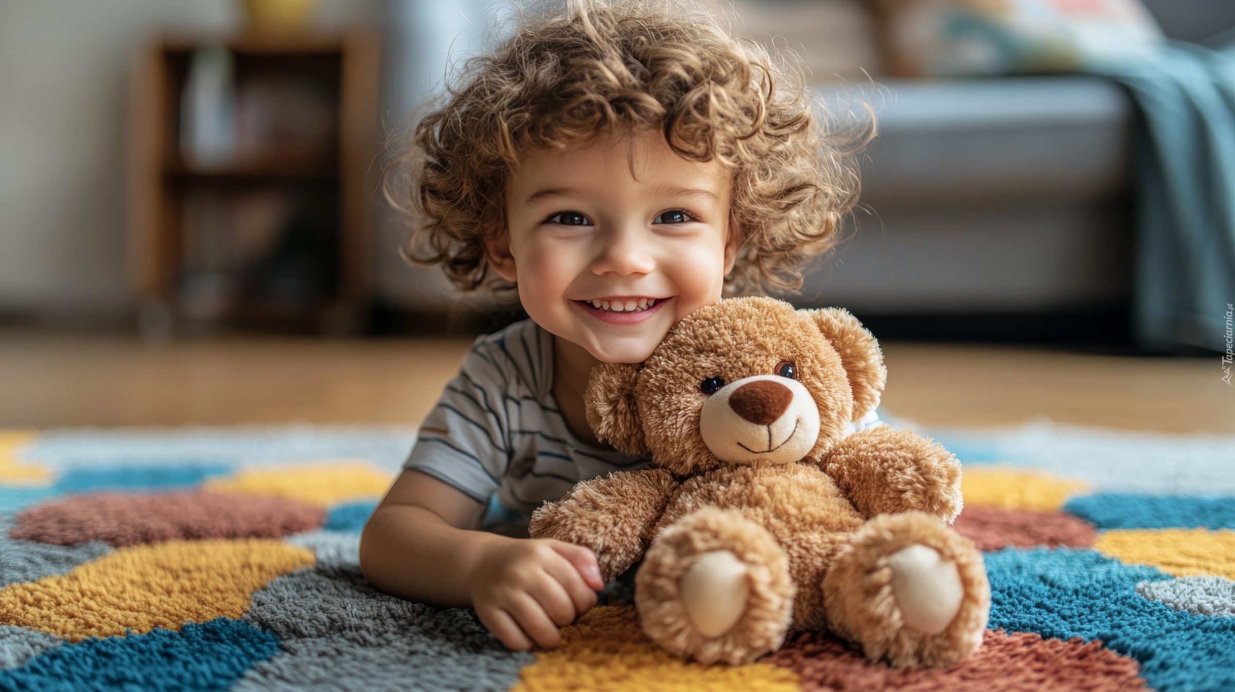 Edytor tapety: Uśmiechnięte dziecko z misiem