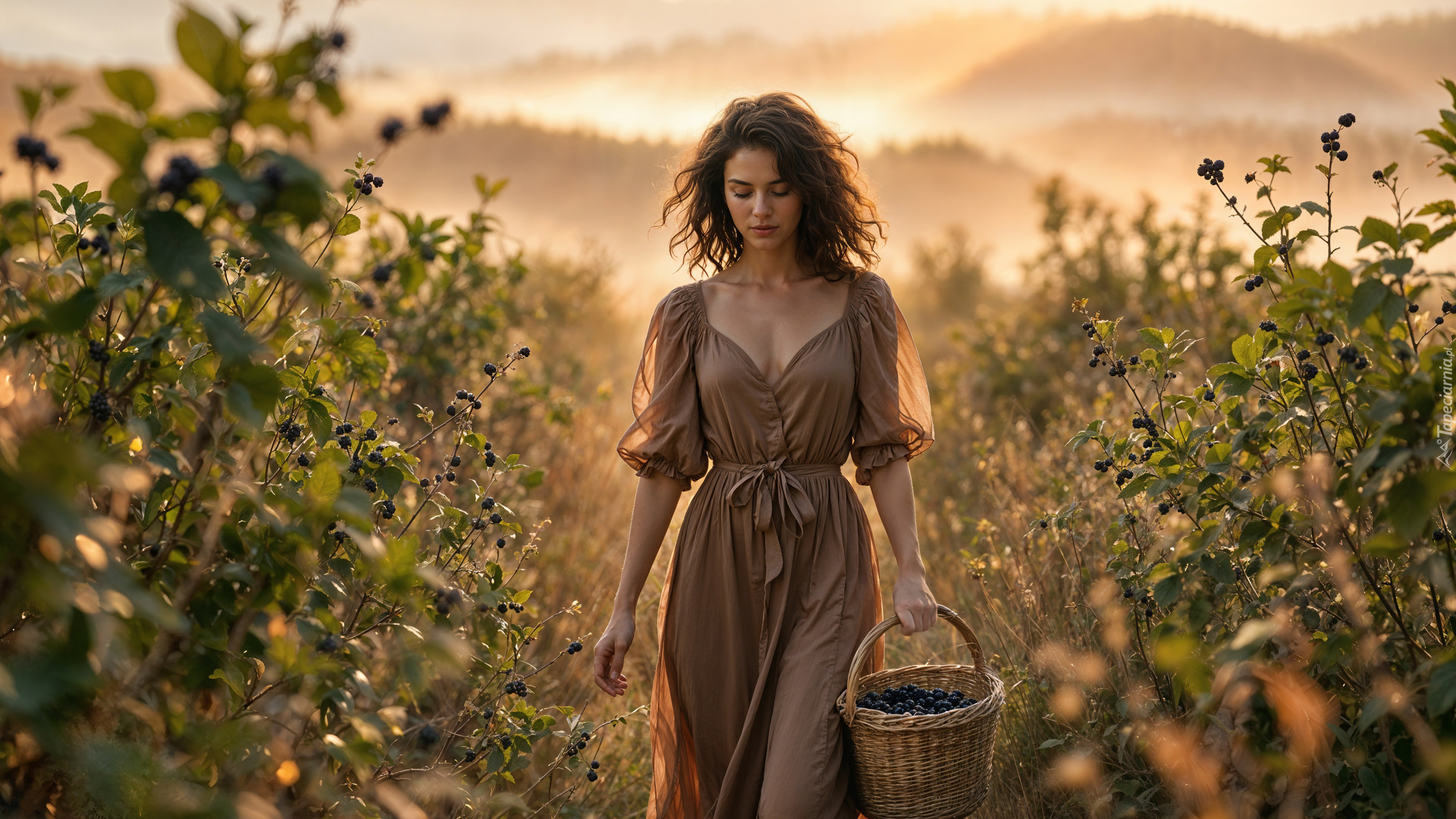 Edytor tapety: Kobieta niosąca koszyk z jeżynami