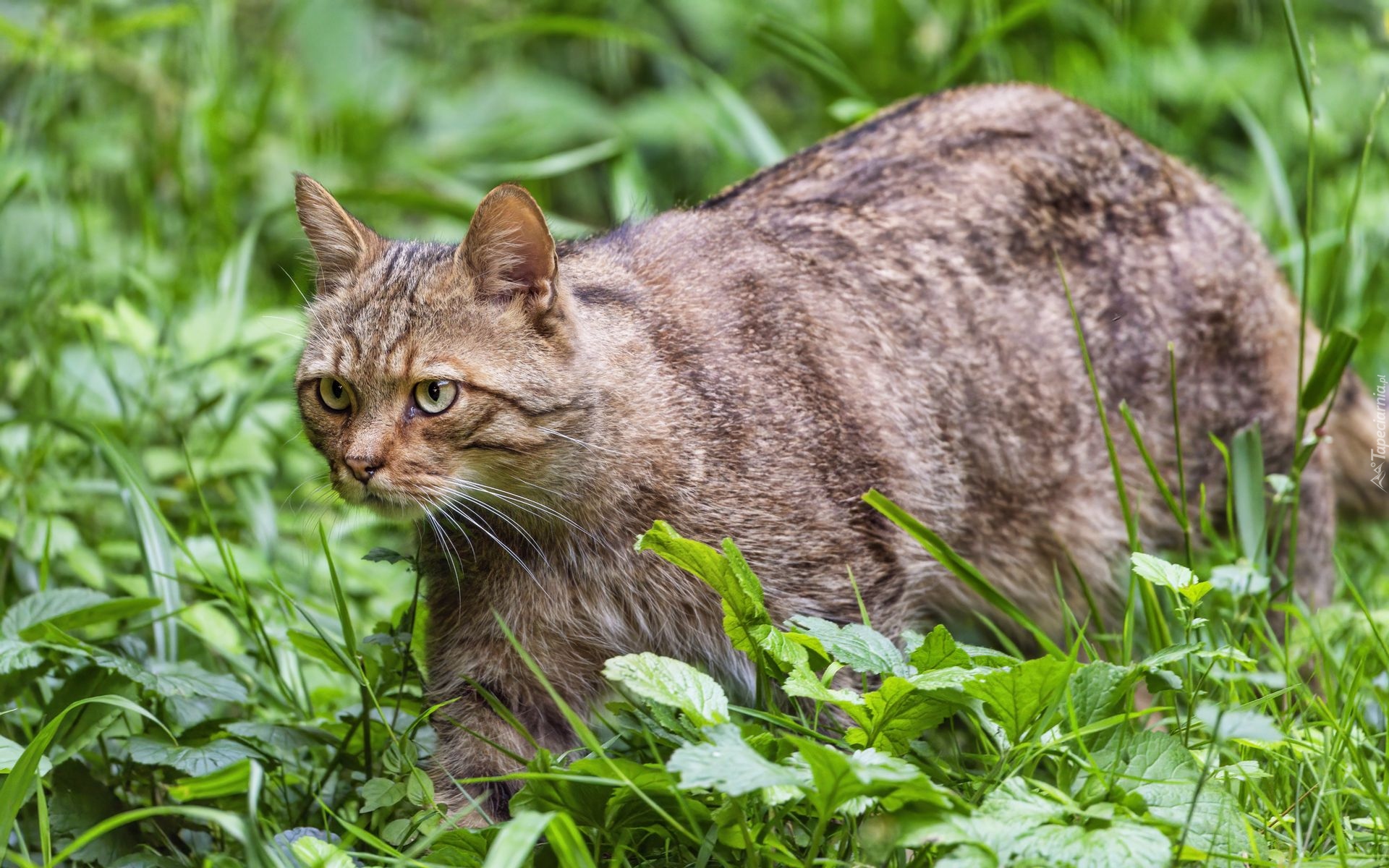 Edytor tapety: Bury kot wśród roślin