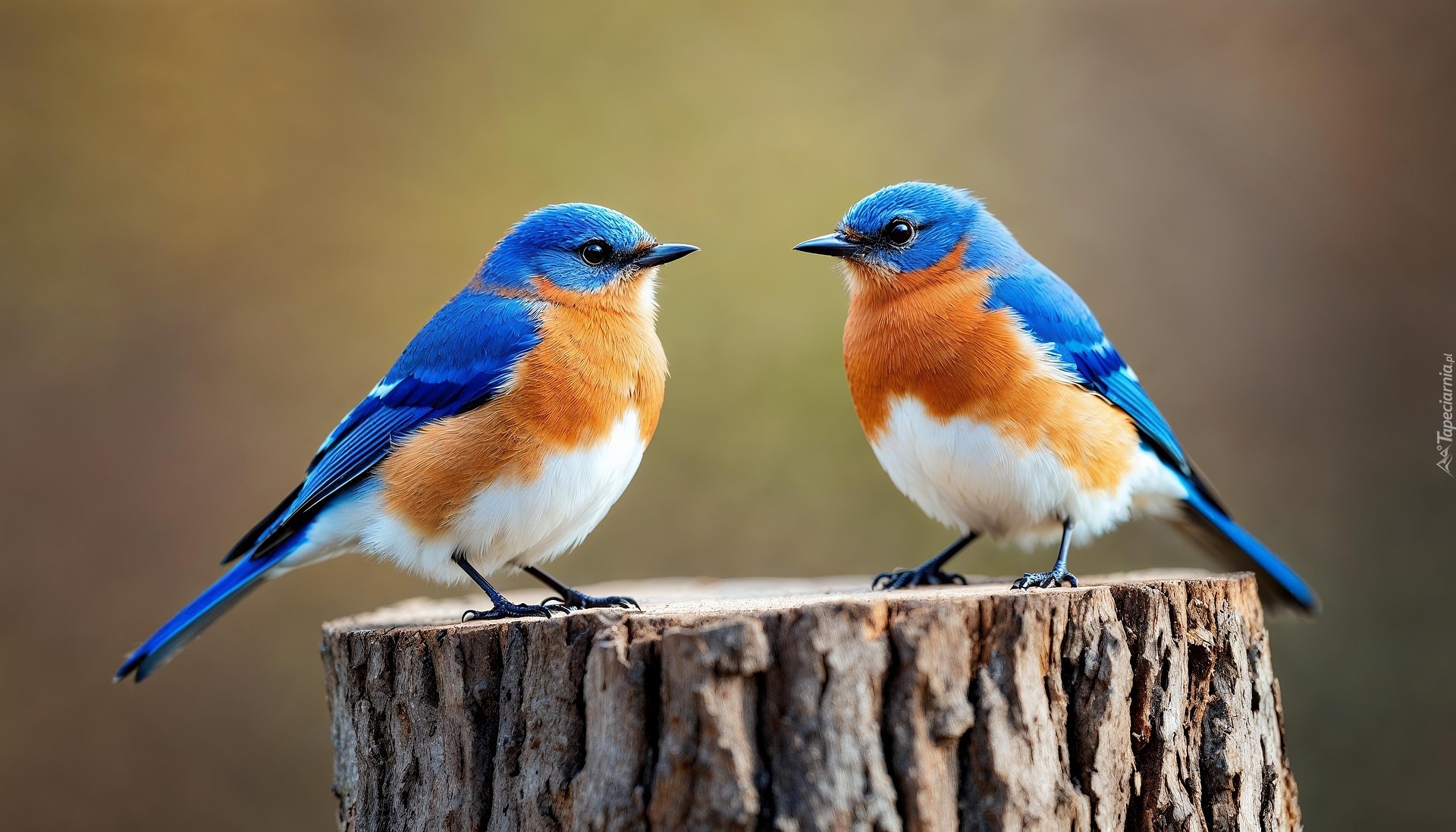 Edytor tapety: Dwa błękitniki rudogardłe na pniaku