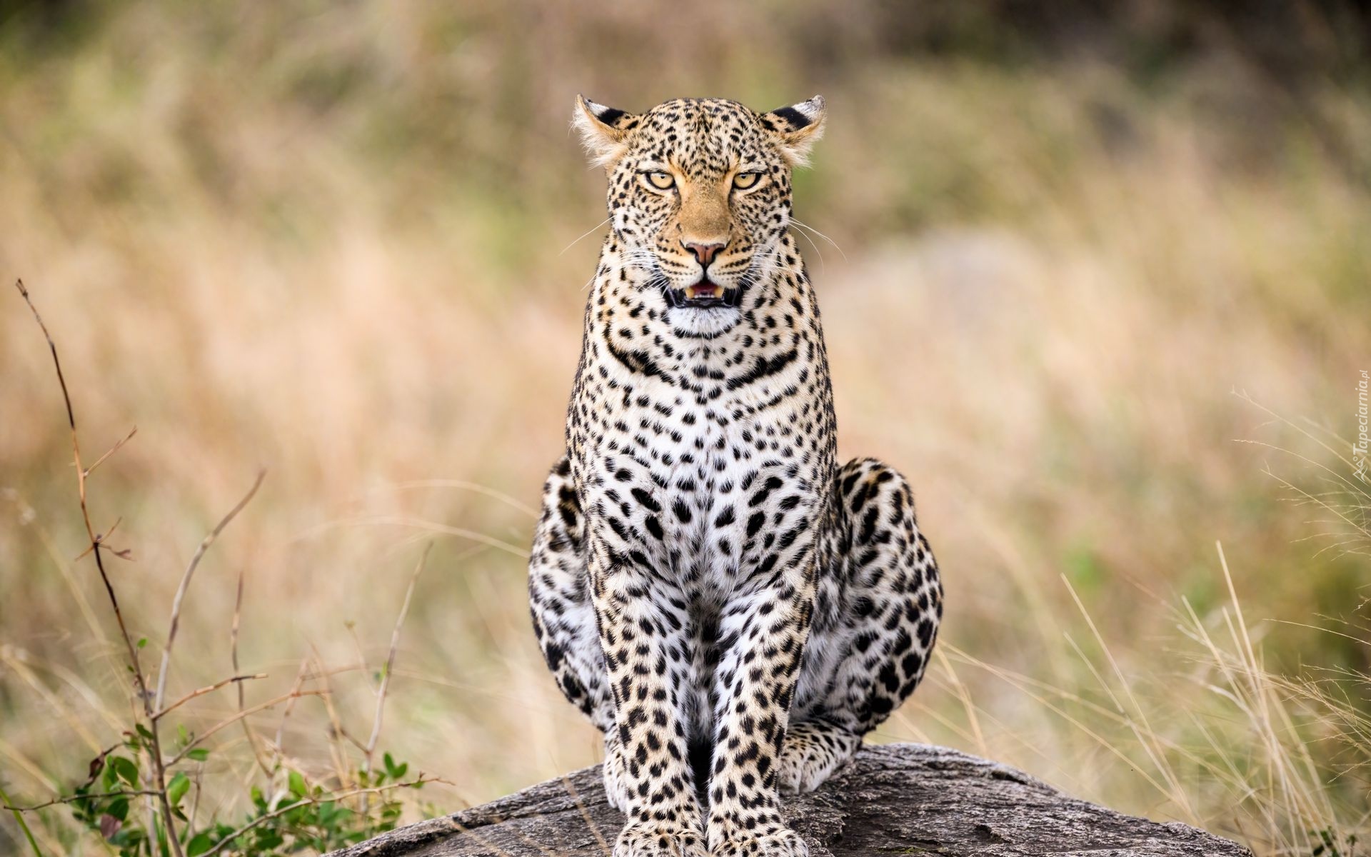 Edytor tapety: Siedzący lampart w zbliżeniu