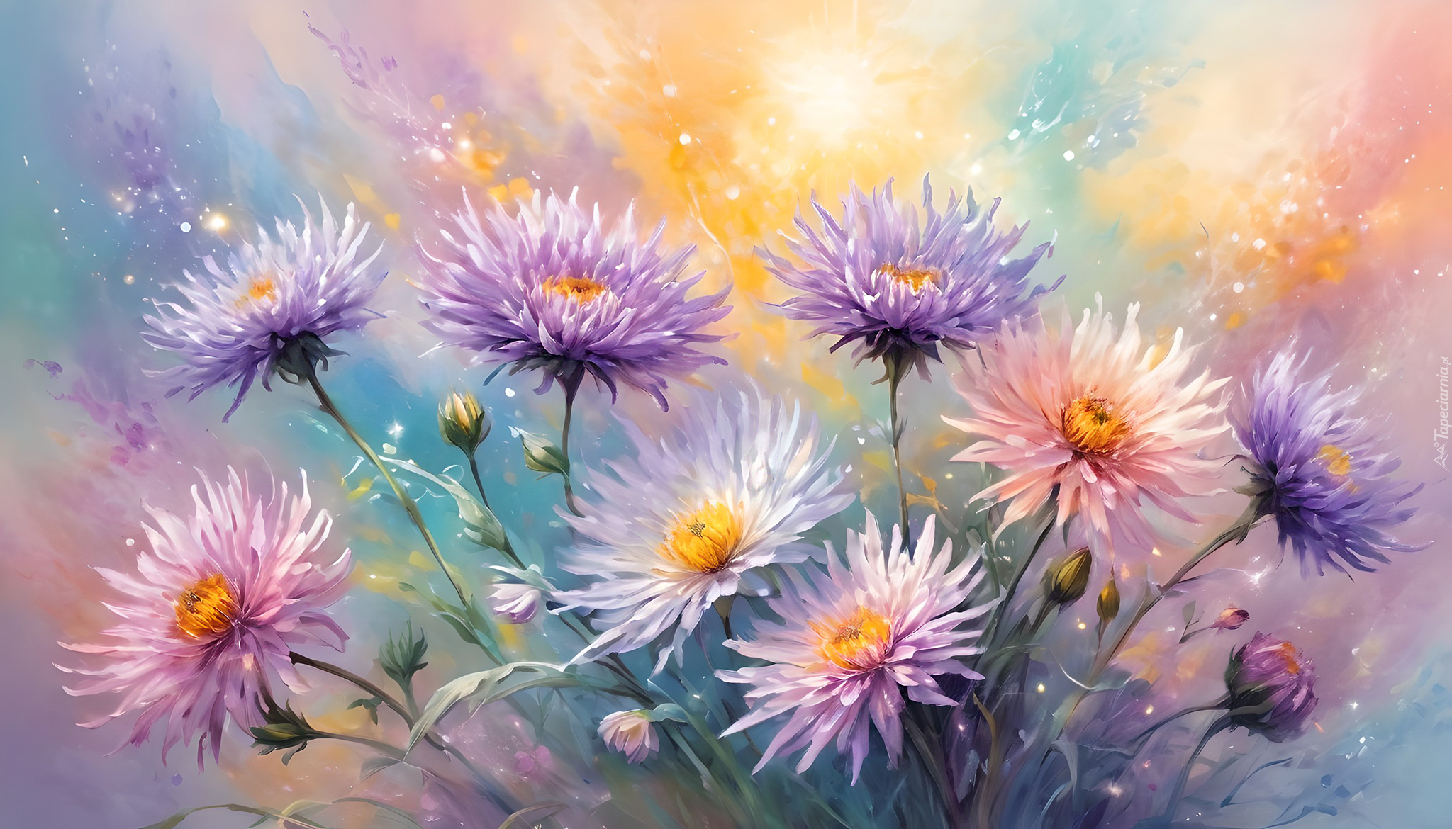 Edytor tapety: Kolorowe astry w grafice