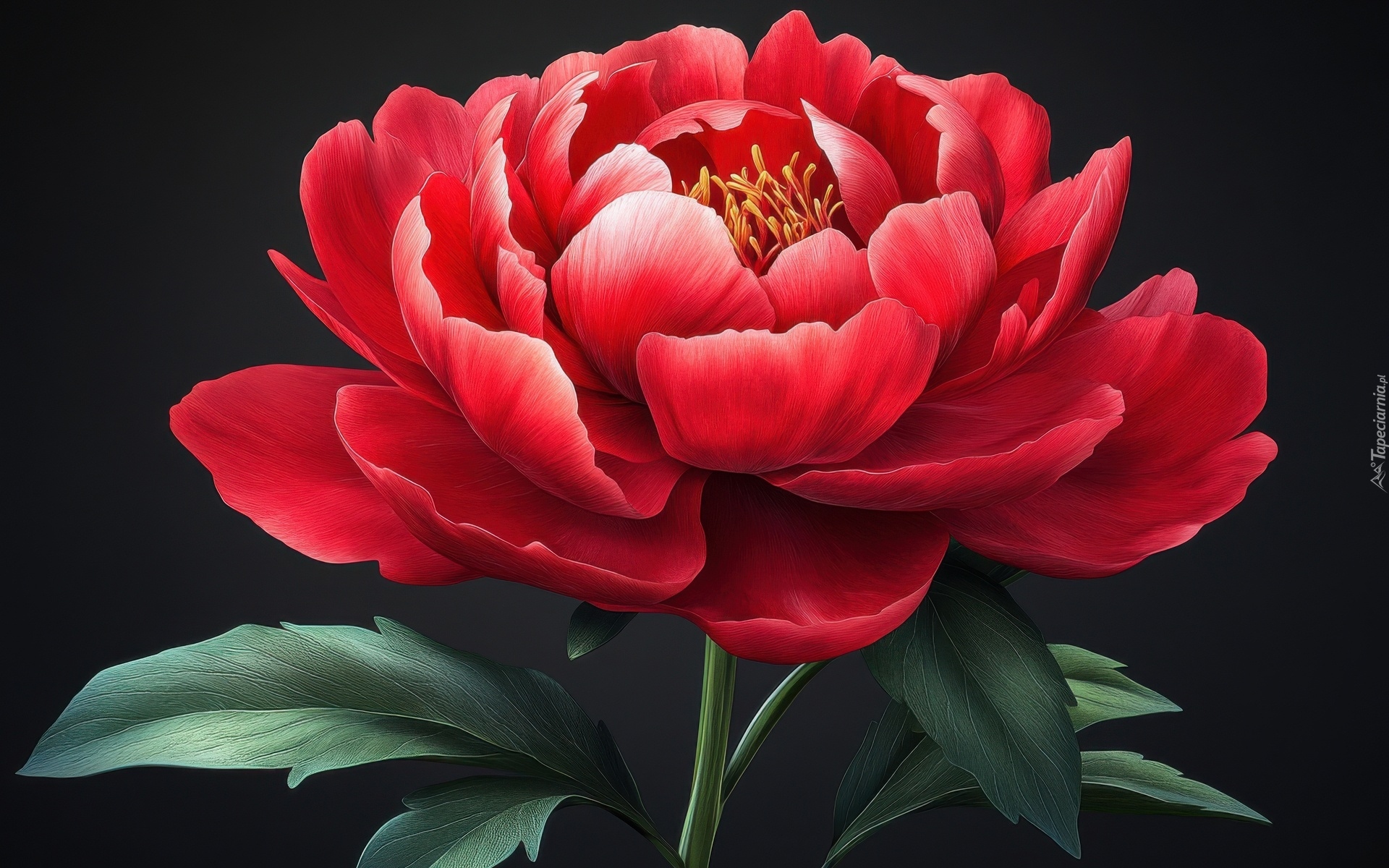 Edytor tapety: Rozkwitnięta czerwona piwonia na czarnym tle