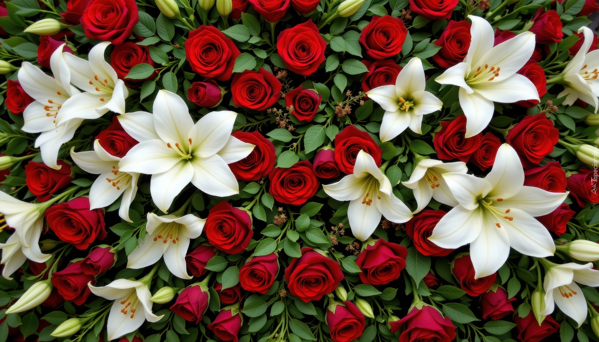 Edytor tapety: Białe lilie i czerwone róże