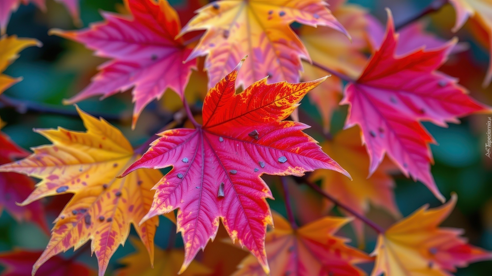 Edytor tapety: Pożółkłe i czerwone liście klonu