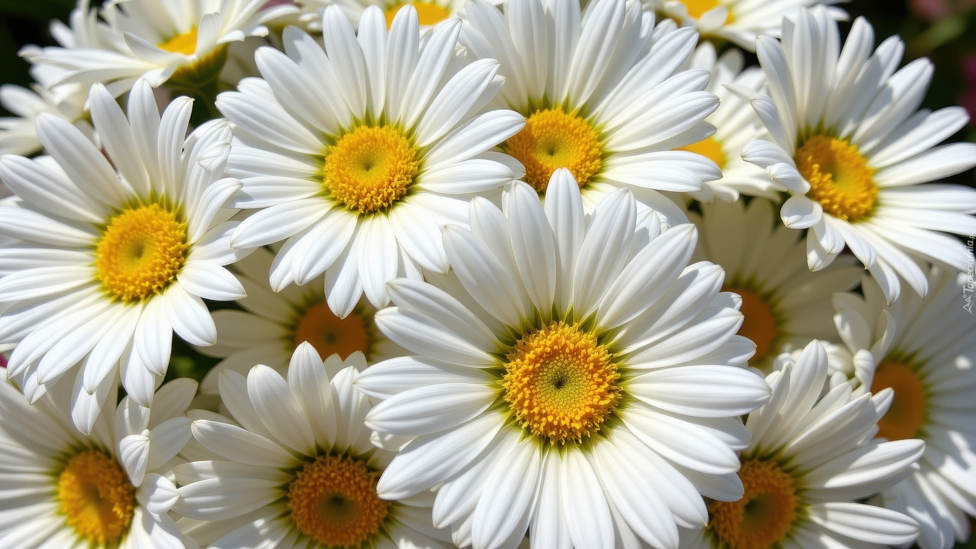 Edytor tapety: Rozkwitnięte białe stokrotki w zbliżeniu