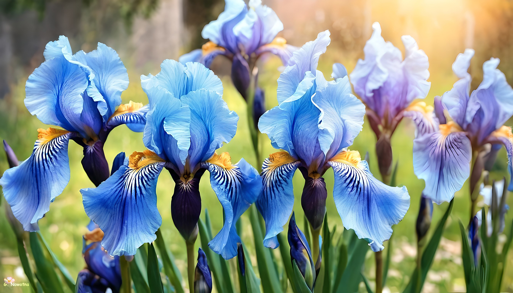 Edytor tapety: Niebieskie irysy na rozświetlonym tle