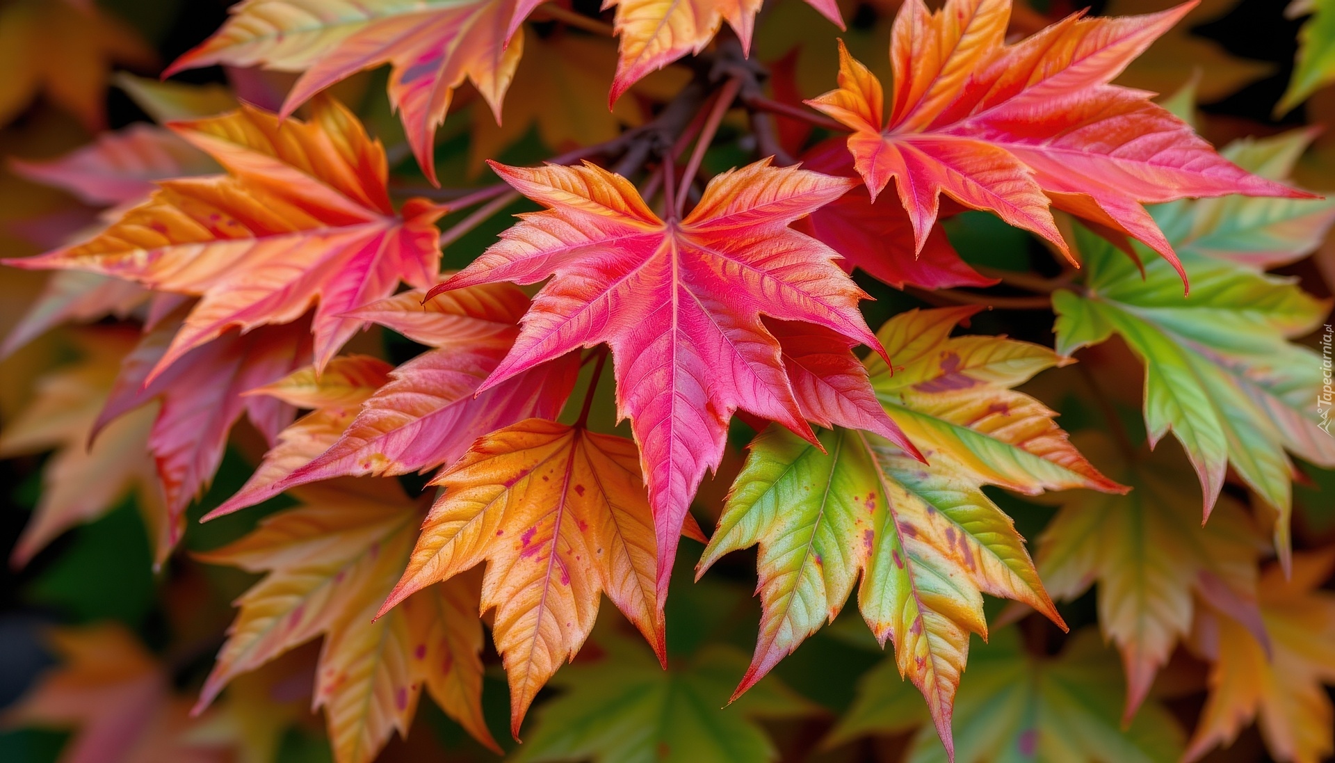 Edytor tapety: Kolorowe jesienne liście klonu na gałązkach