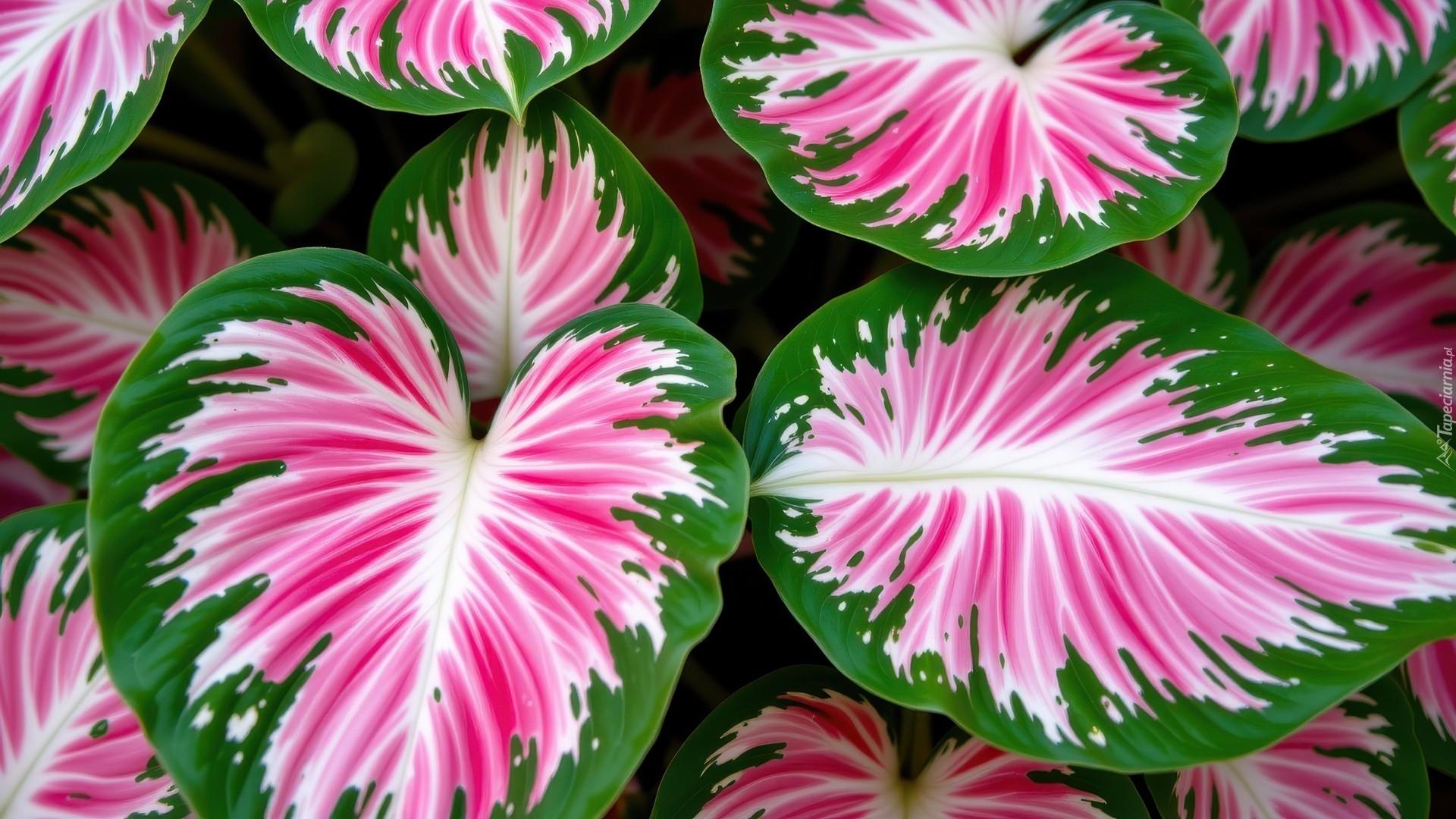 Edytor tapety: Różowo-biało-zielone liście kaladium