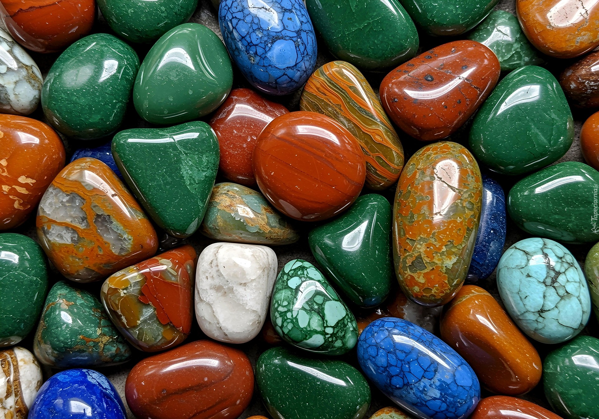 Edytor tapety: Kolorowe błyszczące kamienie o różnych kształtach