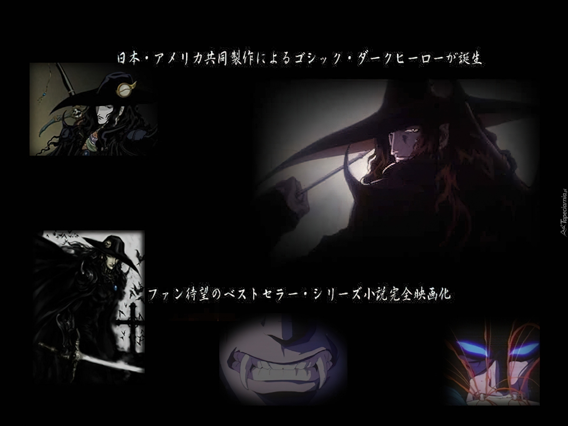 Edytor tapety: Vampire Hunter D - Bloodlust, ciemna, postać, napisy