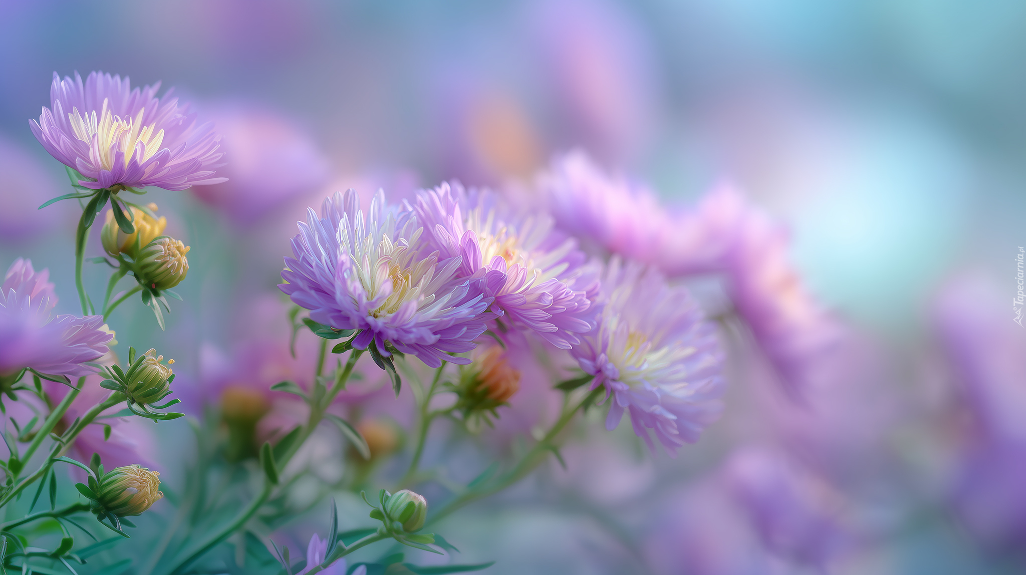 Edytor tapety: Różowo-białe astry na rozmytym tle