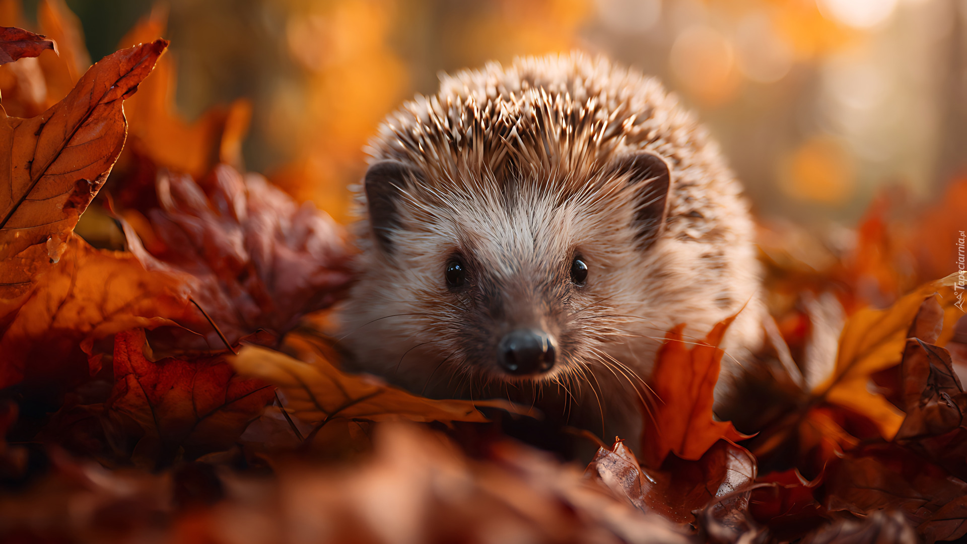 Edytor tapety: Jeż wśród jesiennych liści w AI