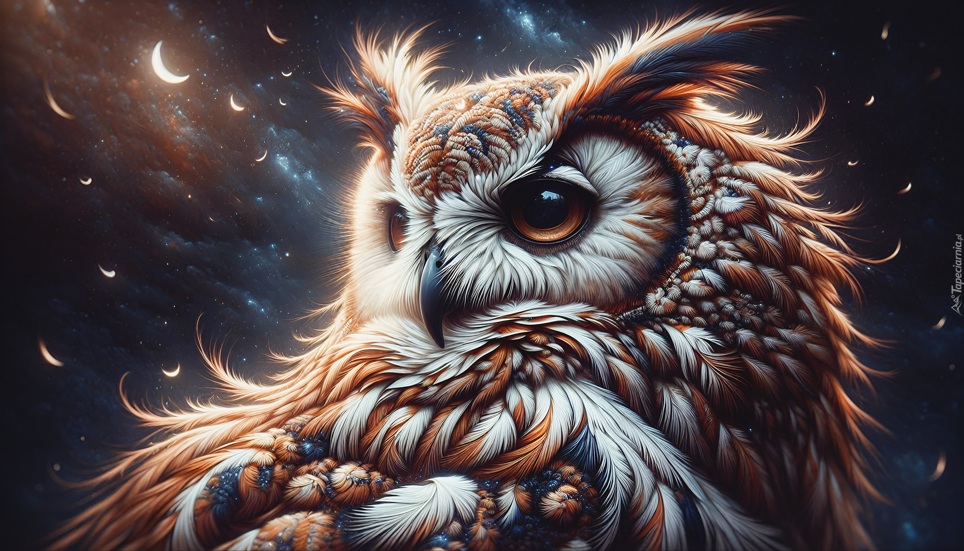 Edytor tapety: Sowa na tle nocnego nieba w grafice