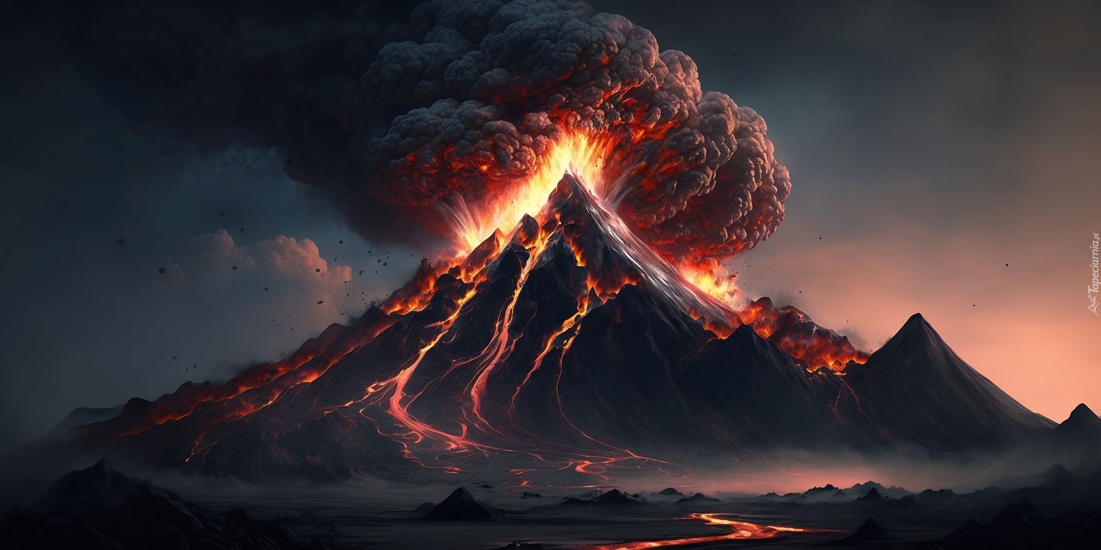 Edytor tapety: Erupcja wulkanu w grafice AI