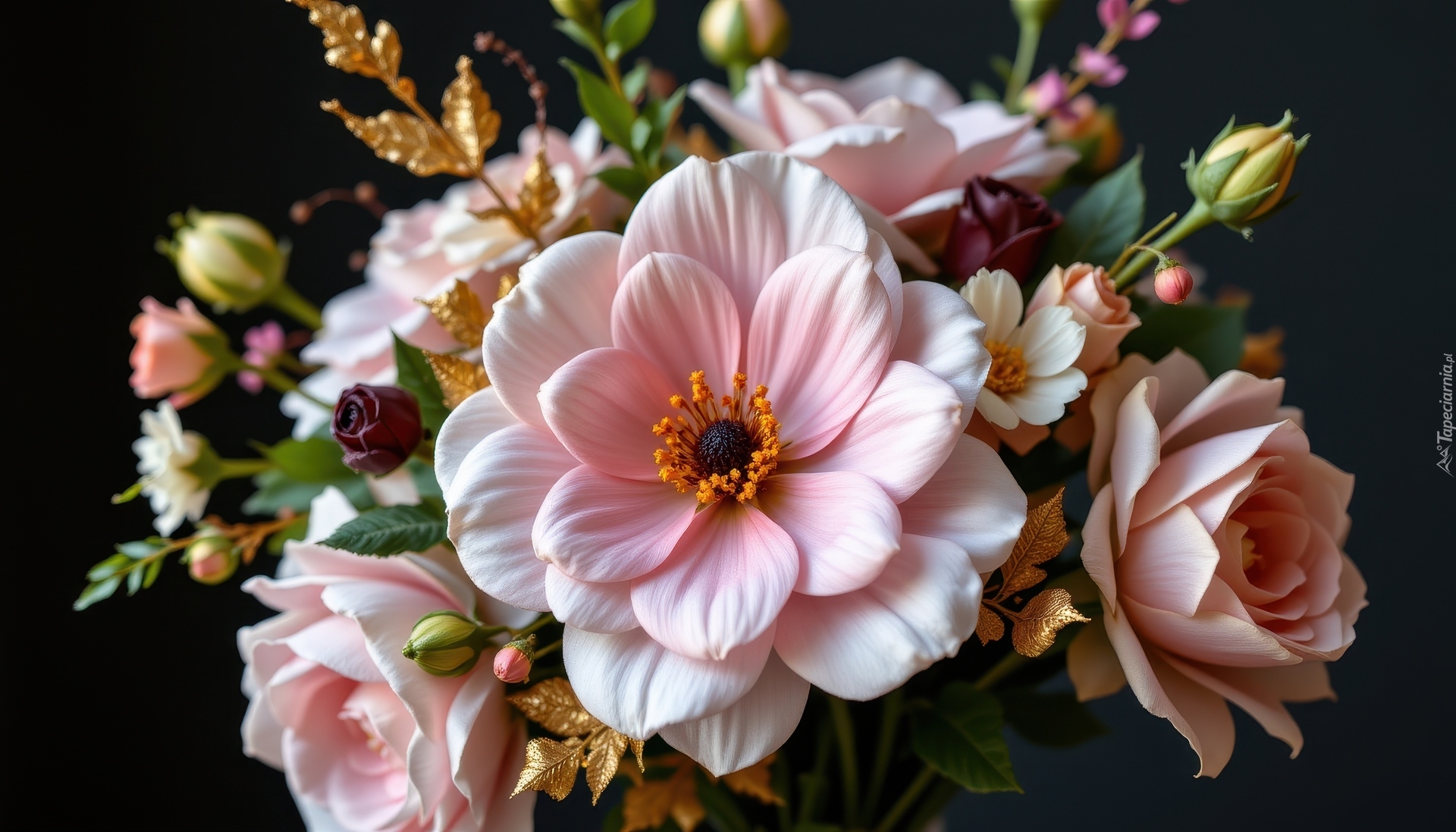 Edytor tapety: Bukiet jasnoróżowych kwiatów w zbliżeniu