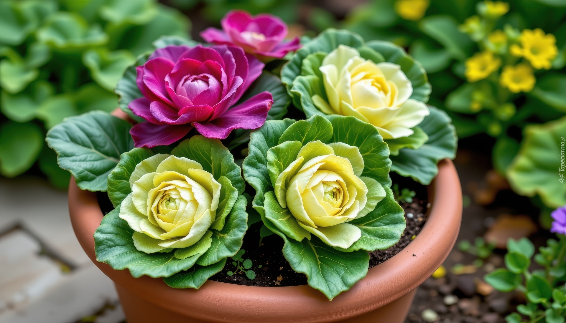 Edytor tapety: Czerwona i biała kapusta ozdobna w doniczce
