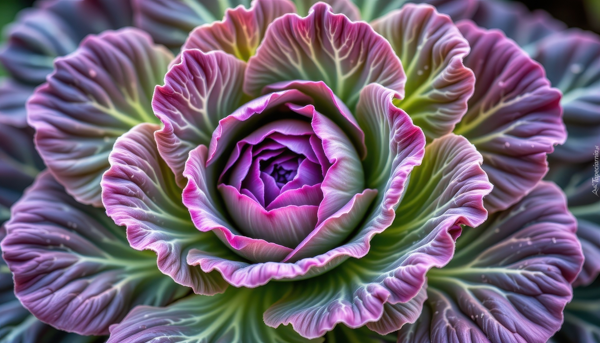 Edytor tapety: Bordowe liście kapusty ozdobnej w zbliżeniu