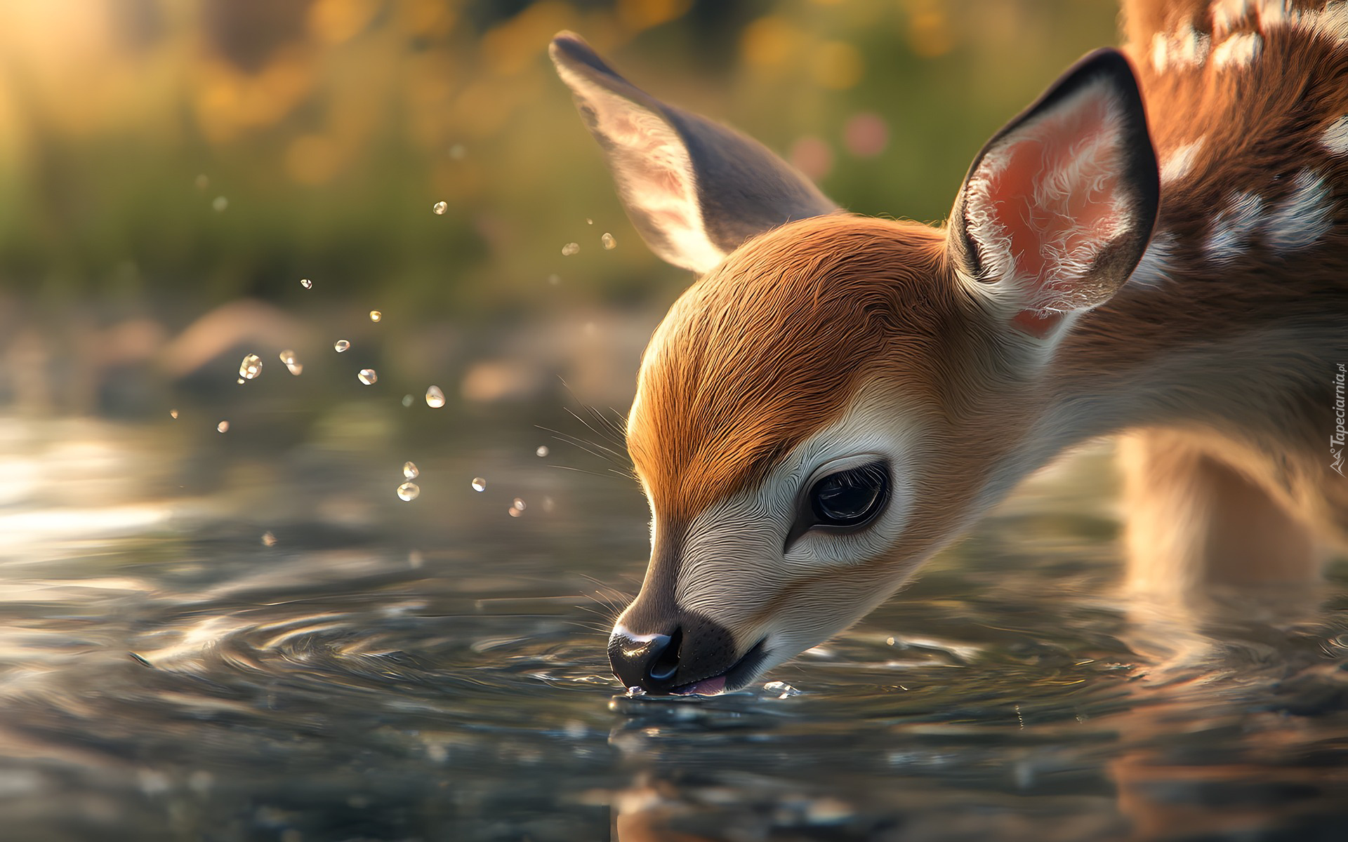 Edytor tapety: Sarna pijąca wodę